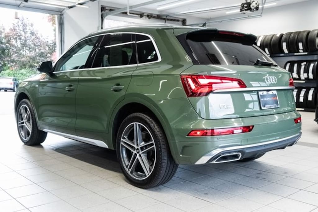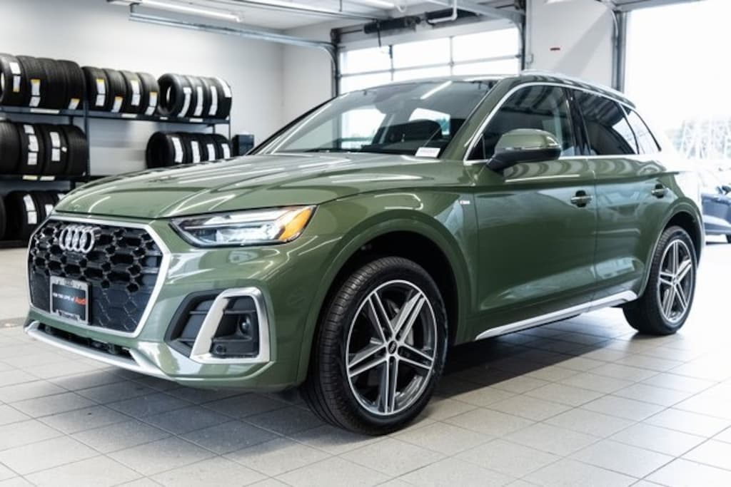 CERTIFIED AUDI PREOWNED! The 2021 Audi Q5 e Premium Plus 55 TFSI quattro is a luxury plug-in hybrid SUV that blends Audi's refined styling with electric innovation. Finished in District Green Metallic with a black leather interior, it pairs sophistication with efficiency. Power comes from a turbocharged 2.0L engine combined with an electric motor, producing strong performance while offering the flexibility of electric-only driving for short trips and the confidence of quattro all-wheel drive for all conditions.