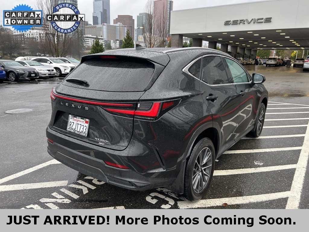 CARFAX One-Owner. Clean CARFAX. 2 YEARS OR 20K MILES MAINTENANCE INCLUDED!, ONE OWNER ON CARFAX!, AWD, BACK UP CAMERA, BLUETOOTH, HEATED AND VENTILATED SEATS, Wireless Apple CarPlay / Wireless Android Auto, Blind Spot Monitor with Rear Cross Traffic Alert, Lexus Safety System+ 3.0- Lane Tracing Assist, Road Sign Assist, Pre-Collision System w/ Pedestrian Detection, Dynamic Radar Cruise Control w/ Curve Speed Management, Lane Departure Alert w/Steering Assist, Intelligent High Beam Headlamps, 2.5L I4 DOHC 16V, 10-Speaker Navigation Audio, 14 Display Navigation, 18 Wheels, Active Cruise Control, Alloy wheels, Auto Rain Sensing Windshield Wipers, Clear Door Trim, Cold Area Package, Exterior Parking Camera Rear, Heated & Ventilated Front Bucket Seats, Heated door mirrors, Heated Leather Steering Wheel w/Paddle, Kick Auto Open/Close Door, Leather Shift Knob, Memory seat, Parking Support Alert/Brake, Power Liftgate, Power moonroof, Power Tilt & Slide Moonroof/Sunroof, Premium Package, Rain sensing wipers, Smart Phone Convenience Package, Speed control, Towing Package (2000 lbs), Wiper & Window Deicer, Wireless Apple CarPlay/Wireless Android Auto, Wireless Smart Door Lock.2022 Lexus NX 350h Premium Caviar AWD 2.5L I4 DOHC 16V eCVTCertified. L/Certified Details: * Vehicle History * Warranty Deductible: $0 * CERTIFIED WARRANTY: Comprehensive Inspection, Unlimited-mileage warranty up to 6 years. Balance of new car warranty (4 Year/50K Miles) plus 2 Year/Unlimited-mileage L/Certified warranty. SERVICE MAINTENANCE: Complimentary Maintenance Plan covering the first four basic factory-scheduled maintenance services for 2 years or 20,000 miles * Roadside Assistance * Limited Warranty: 24 Month/Unlimited Mile41/37 City/Highway MPGCome to www.lexusofbellevue.com To See Our Specials!! Call us at 425-455-9995 for Help with any of our departments. Enjoy a seamless, transparent luxury buying experience at Lexus of Bellevue and Lexus Plus. A dealer documentary service fee in an amount up to two hundred dollars may be added to the sale price or capitalized cost.