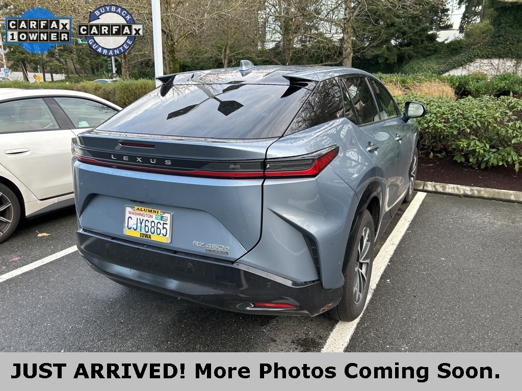 CARFAX One-Owner. 2 YEARS OR 20K MILES MAINTENANCE INCLUDED!, ONE OWNER ON CARFAX!, LOCAL TRADE, BOUGHT HERE SERVICED HERE, LEXUS FACTORY CERTIFIED, AWD, BACK UP CAMERA, BLUETOOTH, HEADS UP DISPLAY, HEATED AND VENTILATED SEATS, NAVIGATION, PARKING SENSORS, PREMIUM PACKAGE, Wireless Apple Carplay / Android Auto Capability, Panoramic View Monitor, Blind Spot Monitor With Rear Cross Traffic Alert, Lexus Safety System+ 3.0- Lane Tracing Assist, Road Sign Assist, Pre-Collision System w/ Pedestrian Detection, All-Speed Dynamic Radar Cruise Control w/ Curve Speed Management Lane Departure Alert w/Steering Assist Intelligent High Beam Headlamps, 10 Speakers, 18 5-Spoke Alloy Wheels, Active Cruise Control, Alloy wheels, Apple CarPlay/Android Auto, Cold Area Package, Digital Key, Digital Rearview Mirror, Exterior Parking Camera Rear, Heads-Up Display, Heated & Ventilated Front Bucket Seats, Heated door mirrors, Heated steering wheel, Intelligent Parking Assist, Memory seat, Navigation System, Power Liftgate, Speed control, Technology Package, Variably intermittent wipers.2023 Lexus RZ 450e Premium Ether AWD Electric Motor Single-Speed AutomaticCertified. L/Certified Details: * Vehicle History * Limited Warranty: 24 Month/Unlimited Mile * CERTIFIED WARRANTY: Comprehensive Inspection, Unlimited-mileage warranty up to 6 years. Balance of new car warranty (4 Year/50K Miles) plus 2 Year/Unlimited-mileage L/Certified warranty. SERVICE MAINTENANCE: Complimentary Maintenance Plan covering the first four basic factory-scheduled maintenance services for 2 years or 20,000 miles * Warranty Deductible: $0 * Roadside AssistanceOdometer is 1948 miles below market average!Come to www.lexusofbellevue.com To See Our Specials!! Call us at 425-455-9995 for Help with any of our departments. Enjoy a seamless, transparent luxury buying experience at Lexus of Bellevue and Lexus Plus. A dealer documentary service fee in an amount up to two hundred dollars may be added to the sale price or capitalized cost.