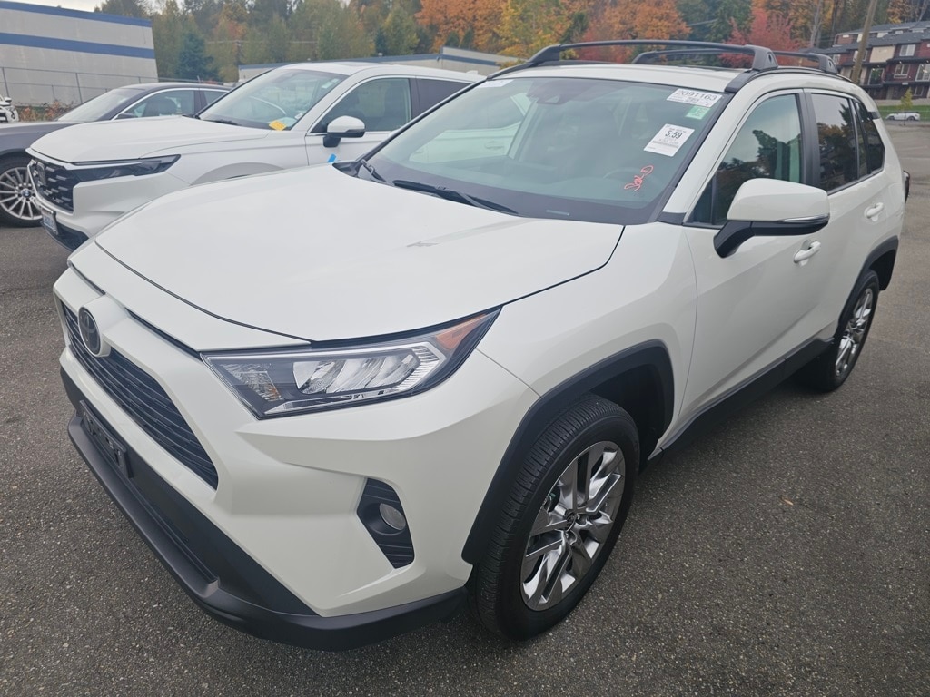 Toyota Gold Certified Certified, AWD, Black Artificial Leather, 3 Spoke Leather Heated Steering Wheel, 3 Spoke Leather Steering Wheel, 4-Wheel Disc Brakes, 6 Speakers, ABS brakes, Air Conditioning, All Weather Floor Liners, All Weather Liner Package (TMS), Alloy wheels, AM/FM radio: SiriusXM, AM/FM Stereo, Apple CarPlay/Android Auto, Auto High-beam Headlights, Automatic temperature control, Axle Ratio: 3.177, Brake assist, Bumpers: body-color, Cargo Liner (TMS), Delay-off headlights, Driver door bin, Driver Seat w/2-Position Memory Function, Driver vanity mirror, Dual front impact airbags, Dual front side impact airbags, Electronic Stability Control, Emergency communication system, Exterior Parking Camera Rear, Four wheel independent suspension, Front anti-roll bar, Front Bucket Seats, Front Center Armrest, Front Door Smart Key System w/Push Button Start, Front dual zone A/C, Front fog lights, Front reading lights, Front Seat Heating, Fully automatic headlights, Heated door mirrors, Illuminated entry, Knee airbag, Leather Shift Knob, Low tire pressure warning, Occupant sensing airbag, Outside temperature display, Overhead airbag, Overhead console, Panic alarm, Passenger door bin, Passenger vanity mirror, Power door mirrors, Power driver seat, Power Liftgate, Power moonroof, Power steering, Power windows, Radio data system, Rain Sensing Front Wipers, Rear anti-roll bar, Rear seat center armrest, Rear window defroster, Rear window wiper, Remote keyless entry, Roof Rack Cross Bars (TMS), Roof rack: rails only, SofTex Seat Trim, Speed control, Speed-sensing steering, Split folding rear seat, Spoiler, Steering wheel mounted audio controls, Tachometer, Telescoping steering wheel, Tilt & Slide Moon Roof, Tilt steering wheel, Traction control, Trip computer, Turn signal indicator mirrors, Variably intermittent wipers, Wheels: 19" Multi-Spoke Super Chrome Alloy, Wiper Deicer, XLE Premium Grade Weather Package, XLE Premium Package, AWD, Black Artificial Leather. Features: 2021 Toyota RAV4 XLE Premium Blizzard Pearl AWD 2.5L 4-Cylinder DOHC Dual VVT-i 8-Speed Automatic