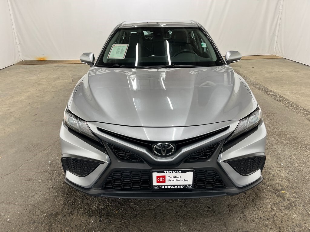Toyota Gold Certified Certified, Black Artificial Leather, 18" x 8J Alloy Wheels, 4-Wheel Disc Brakes, 6 Speakers, ABS brakes, Air Conditioning, Alloy wheels, AM/FM radio: SiriusXM, Apple CarPlay/Android Auto, Auto High-beam Headlights, Automatic temperature control, Brake assist, Bumpers: body-color, Carpet/Trunk Mat Set (TMS), Cold Weather Package, Delay-off headlights, Driver door bin, Driver vanity mirror, Dual front impact airbags, Dual front side impact airbags, Electronic Stability Control, Emergency communication system: Safety Connect (1-year trial), Exterior Parking Camera Rear, Four wheel independent suspension, Front anti-roll bar, Front Bucket Seats, Front Center Armrest, Front dual zone A/C, Front reading lights, Fully automatic headlights, Heated door mirrors, Heated Exterior Mirrors, Heated Steering Wheel, Illuminated entry, Knee airbag, Leather steering wheel, Low tire pressure warning, Multi-Stage Heated Front Seats, Occupant sensing airbag, Outside temperature display, Overhead airbag, Overhead console, Panic alarm, Passenger door bin, Passenger vanity mirror, Power door mirrors, Power driver seat, Power steering, Power windows, Radio data system, Radio: Audio, Rear anti-roll bar, Rear Bumper Applique (TMS), Rear seat center armrest, Rear side impact airbag, Rear window defroster, Remote keyless entry, Security system, Speed control, Speed-sensing steering, Split folding rear seat, Spoiler, Sport SofTex Seat Trim w/Fabric Inserts, Steering wheel mounted audio controls, Tachometer, Telescoping steering wheel, Tilt steering wheel, Traction control, Trip computer, Turn signal indicator mirrors, Variably intermittent wipers, Black Artificial Leather. Features: 2024 Toyota Camry SE Celestial Silver FWD 2.5L I4 DOHC 16V 8-Speed Automatic