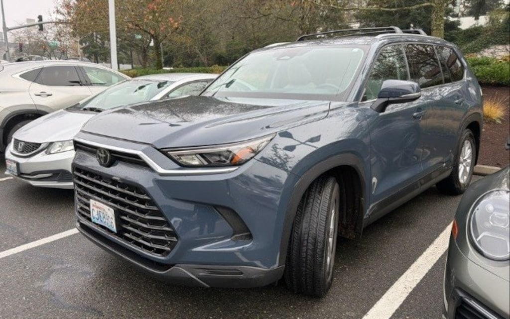 Toyota Gold Certified Certified, 18" Aluminum Alloy Wheels, 3.33 Axle Ratio, 3rd row seats: split-bench, 4-Wheel Disc Brakes, 6 Speakers, ABS brakes, Air Conditioning, Alloy wheels, AM/FM radio: SiriusXM, Apple CarPlay/Android Auto, Auto High-beam Headlights, Auto-dimming Rear-View mirror, Automatic temperature control, Brake assist, Bumpers: body-color, Delay-off headlights, Driver door bin, Driver vanity mirror, Dual front impact airbags, Dual front side impact airbags, Electronic Stability Control, Emergency communication system: Safety Connect (up to 10-year trial subscription), Exterior Parking Camera Rear, Four wheel independent suspension, Front anti-roll bar, Front Bucket Seats, Front Center Armrest, Front dual zone A/C, Front reading lights, Fully automatic headlights, Garage door transmitter: HomeLink, Heated door mirrors, Heated Front Seats, Heated front seats, Illuminated entry, Knee airbag, Leather Shift Knob, Leather steering wheel, Low tire pressure warning, Navigation system: Drive Connect Cloud Navigation (1-year trial subscription), Occupant sensing airbag, Outside temperature display, Overhead airbag, Overhead console, Panic alarm, Passenger door bin, Passenger vanity mirror, Power door mirrors, Power driver seat, Power Liftgate, Power passenger seat, Power steering, Power windows, Radio: 12.3" Toyota Audio Multimedia, Rear air conditioning, Rear anti-roll bar, Rear reading lights, Rear window defroster, Rear window wiper, Reclining 3rd row seat, Remote keyless entry, Security system, SofTex Seat Trim, Speed control, Speed-sensing steering, Split folding rear seat, Spoiler, Steering wheel mounted audio controls, Tachometer, Telescoping steering wheel, Tilt steering wheel, Traction control, Trip computer, Turn signal indicator mirrors, Variably intermittent wipers. Features: 2024 Toyota Grand Highlander XLE Storm Cloud AWD 2.4L 4-Cylinder 8-Speed Automatic