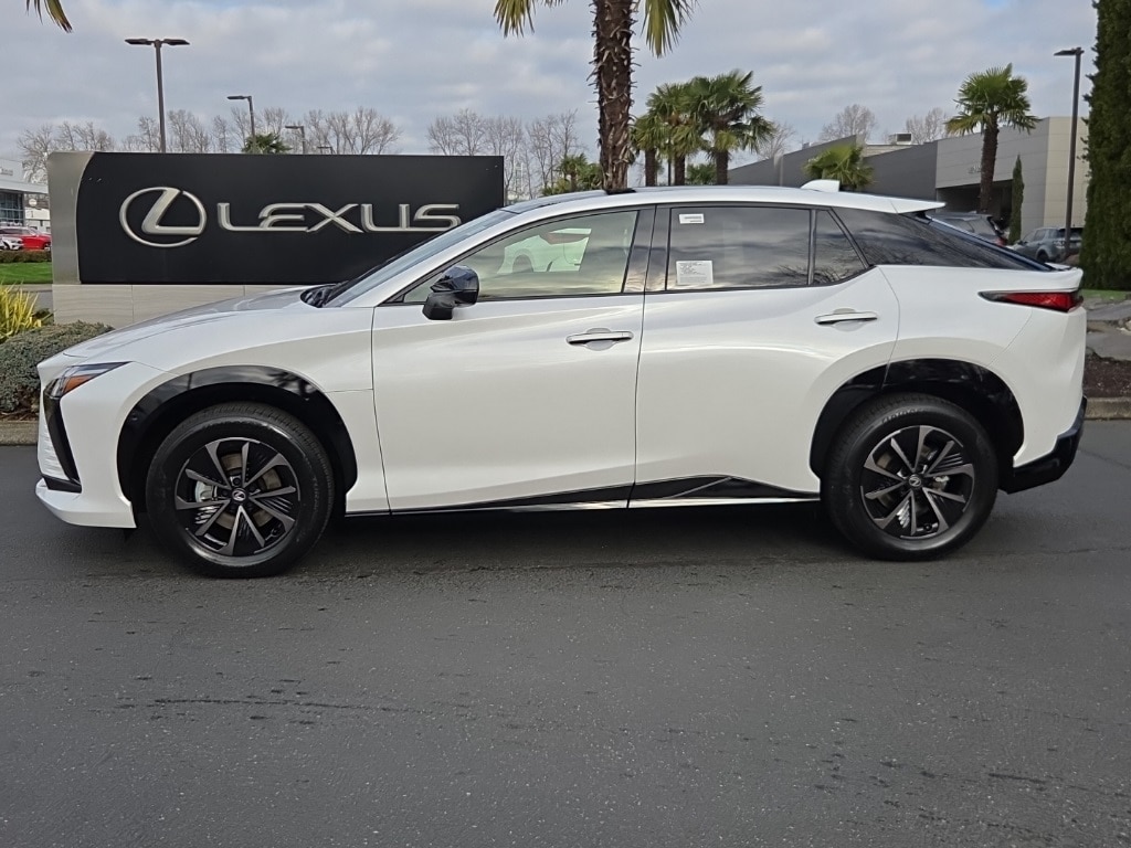 White 2026 Lexus RZ 450e Premium AWD Single-Speed Automatic Electric Motor 10 Speakers, 10" Head-Up Display, 18" 5-Spoke Alloy Wheels, 4-Wheel Disc Brakes, ABS brakes, Advanced Park w/Remote Park, Air Conditioning, Alloy Wheel Locks with Triple Nickel Chrome Plating, Alloy wheels, AM/FM radio: SiriusXM, Apple CarPlay/Android Auto, Auto High-beam Headlights, Auto-dimming door mirrors, Auto-dimming Rear-View mirror, Automatic temperature control, Brake assist, Bumpers: body-color, Cold Area Package, Convenience Package, Delay-off headlights, Digital Key, Digital Rearview Mirror, Driver door bin, Driver vanity mirror, Dual front impact airbags, Dual front side impact airbags, Electronic Stability Control, Emergency communication system: Safety Connect (5-year minimum), Exterior Parking Camera Rear, Four wheel independent suspension, Front anti-roll bar, Front Bucket Seats, Front Center Armrest, Front Cross-Traffic Alert and Lane Change Assist, Front dual zone A/C, Front Radiant Heater, Front reading lights, Fully automatic headlights, Headlamp Washers, Heated and Ventilated Front Seats, Heated door mirrors, Heated front seats, Heated steering wheel, Illuminated entry, Knee airbag, Lexus Interface with 14" Touchscreen Display, Low tire pressure warning, Memory seat, Navigation System, NuLuxe Seat Trim, Occupant sensing airbag, Outside temperature display, Overhead airbag, Overhead console, Panic alarm, Passenger door bin, Passenger vanity mirror, Power door mirrors, Power driver seat, Power Liftgate, Power passenger seat, Power steering, Power windows, Radio data system, Radio: Lexus 10-Speaker Premium Sound System, Rain sensing wipers, Rear anti-roll bar, Rear seat center armrest, Rear window defroster, Remote keyless entry, Security system, SiriusXM Trial Offering: 33 Months, Speed control, Speed-sensing steering, Split folding rear seat, Steering wheel memory, Steering wheel mounted audio controls, Technology Package, Telescoping steering wheel, Tilt steering wheel, Traction control, Traffic Jam Assist, Trip computer, Turn signal indicator mirrors, Variably intermittent wipers, Ventilated front seats, Windshield Wiper De-Icer.