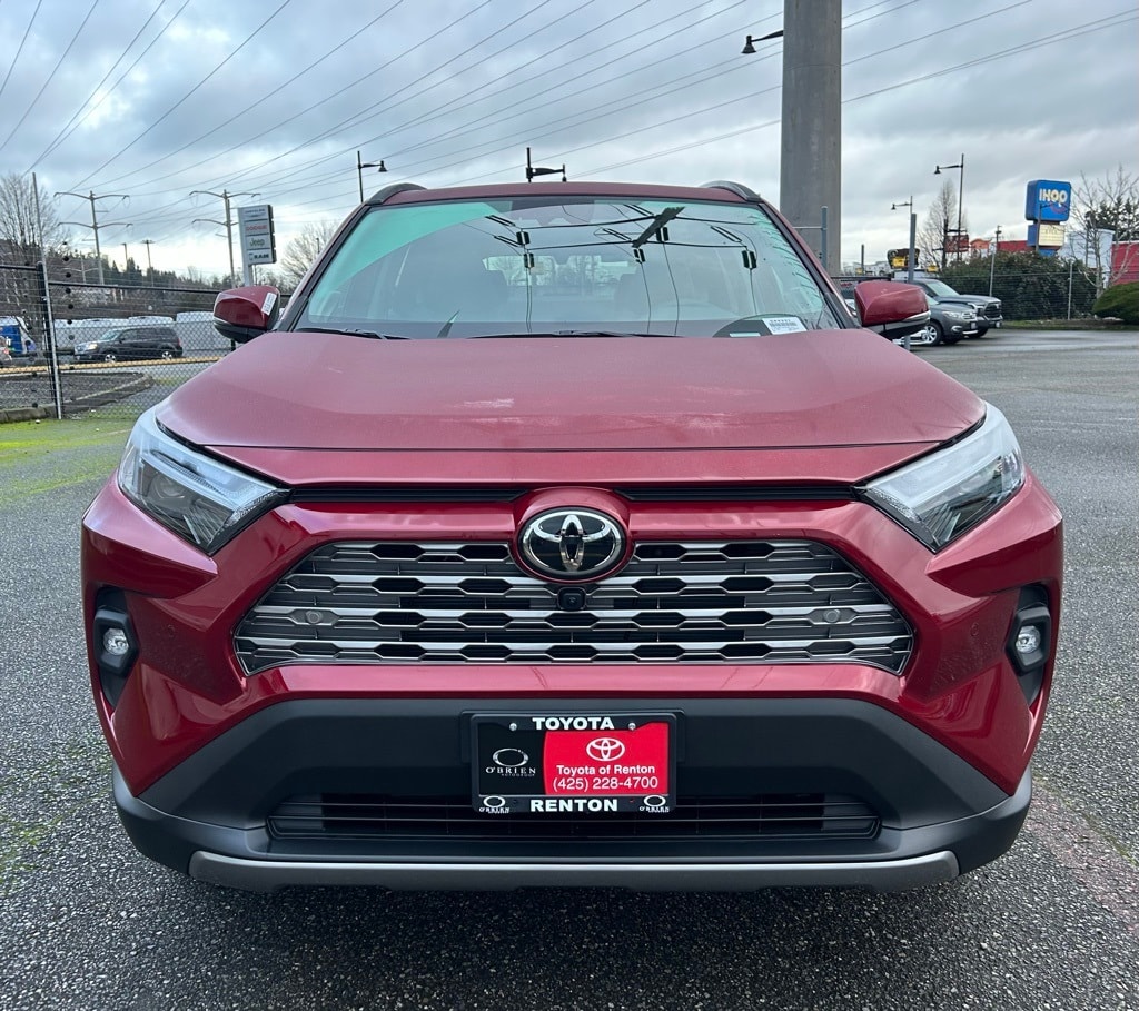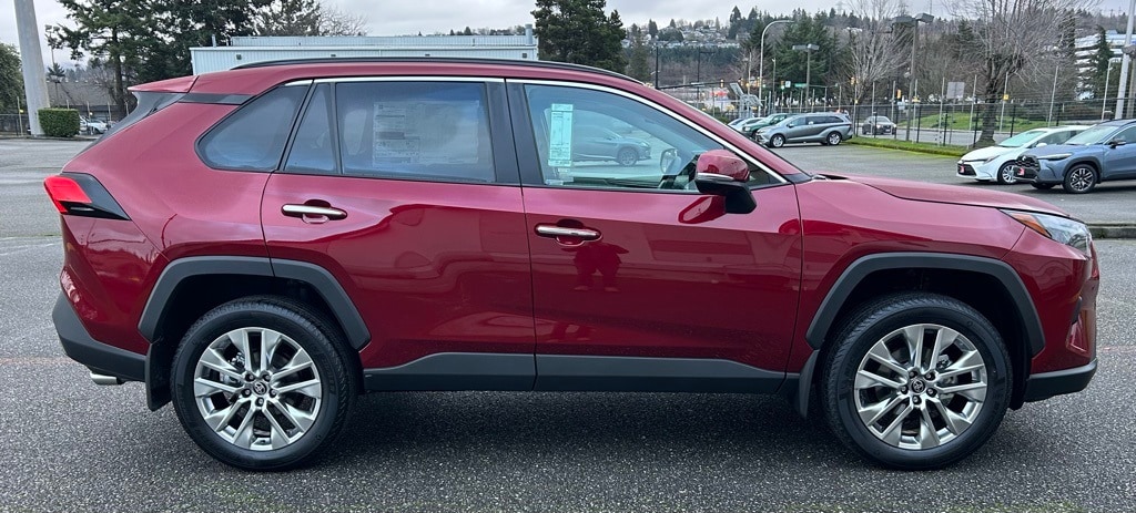11 Speakers, 3 Spoke Leather Heated Steering Wheel, 4-Wheel Disc Brakes, ABS brakes, Advanced Technology Package, Air Conditioning, All Weather Floor Liners & Cargo Liner (TMS), Alloy wheels, AM/FM radio: SiriusXM, Auto High-beam Headlights, Auto-dimming Rear-View mirror, Automatic temperature control, Brake assist, Bumpers: body-color, Delay-off headlights, Driver door bin, Driver vanity mirror, Dual front impact airbags, Dual front side impact airbags, Electronic Inside Rear View Mirror, Electronic Stability Control, Emergency communication system: Safety Connect (10-year trial), Exterior Parking Camera Rear, Four wheel independent suspension, Front anti-roll bar, Front Bucket Seats, Front Center Armrest, Front dual zone A/C, Front fog lights, Front reading lights, Fully automatic headlights, Garage door transmitter: HomeLink, Heated door mirrors, Heated front seats, Heated/Ventilated Front Bucket Seats, Height-Adjustable Power Liftgate, Illuminated entry, JBL Audio System, Knee airbag, Leather Shift Knob, Leather steering wheel, Low tire pressure warning, Memory seat, Mudguards (TMS), Occupant sensing airbag, Outside temperature display, Overhead airbag, Overhead console, Panic alarm, Panoramic View Monitor, Passenger door bin, Passenger vanity mirror, Power door mirrors, Power driver seat, Power Liftgate, Power moonroof, Power passenger seat, Power steering, Power windows, Radio data system, Rear anti-roll bar, Rear seat center armrest, Rear Seat Heating, Rear window defroster, Rear window wiper, Remote keyless entry, Security system, Smart Key System w/Push Button Start, SofTex Seat Trim, Speed control, Speed-sensing steering, Split folding rear seat, Spoiler, Steering wheel mounted audio controls, Tachometer, Telescoping steering wheel, Tilt steering wheel, Traction control, Trip computer, Turn signal indicator mirrors, Variably intermittent wipers, Ventilated front seats, Weather Package, Wheel Locks (TMS), Wheels: 19" Multi-Spoke Super Chrome Alloy, Wireless Phone Charger.2025 Toyota RAV4 Limited Ruby AWD 8-Speed Automatic 2.5L 4-Cylinder DOHC Dual VVT-i25/33 City/Highway MPG