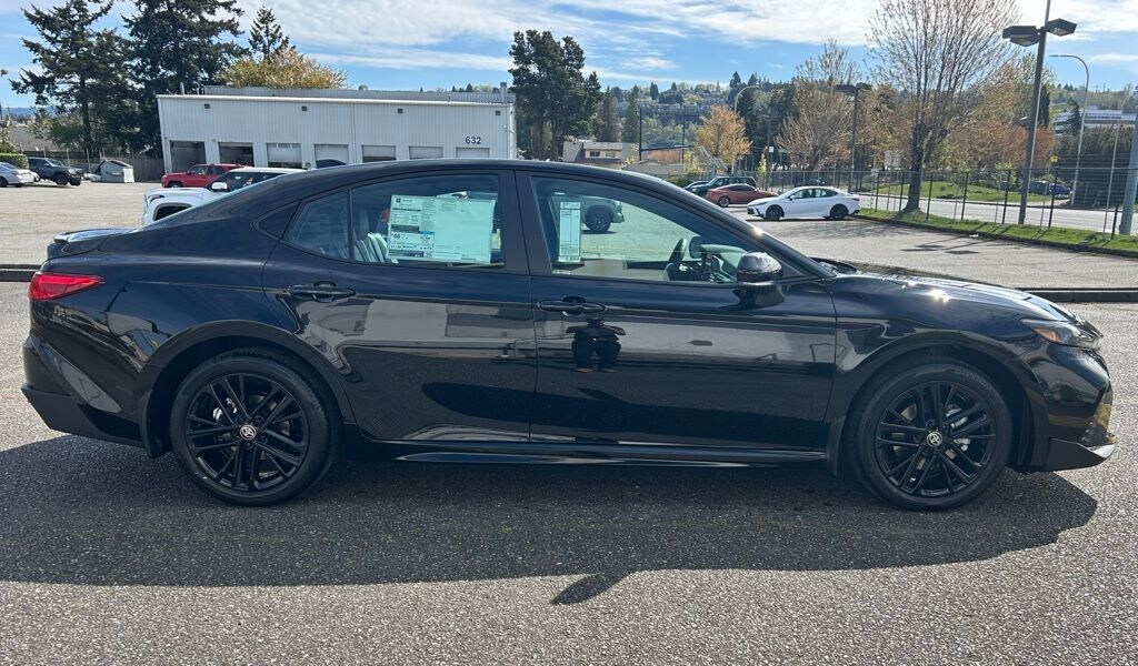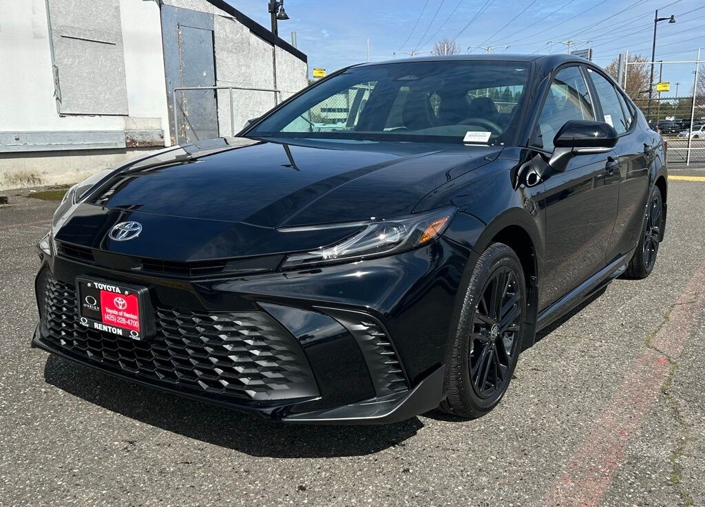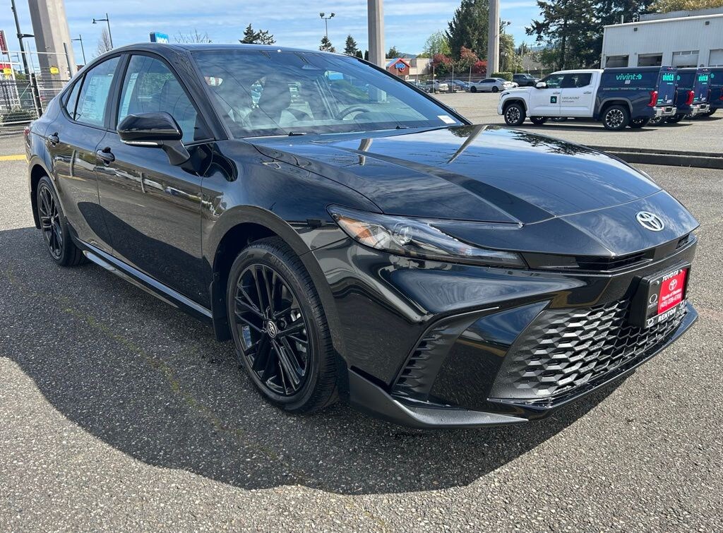 4-Wheel Disc Brakes, 6 Speakers, ABS brakes, Air Conditioning, All Weather Floor Protection, Alloy wheels, AM/FM radio: SiriusXM, Apple CarPlay/Android Auto, Auto High-beam Headlights, Auto-Dimming Rearview Mirror with HomeLink, Automatic temperature control, Brake assist, Bumpers: body-color, Cold Weather Package, Convenience Package, Delay-off headlights, Driver door bin, Driver vanity mirror, Dual front impact airbags, Dual front side impact airbags, Electronic Stability Control, Emergency communication system: Safety Connect (5-year trial), Exterior Parking Camera Rear, Four wheel independent suspension, Front anti-roll bar, Front Bucket Seats, Front Center Armrest, Front dual zone A/C, Front reading lights, Front Seats, Fully automatic headlights, Heated door mirrors, Heated Front Seats, Heated Leather Steering Wheel with Paddle Shifters, Illuminated entry, Knee airbag, Leather Shift Knob, Leather steering wheel, Low tire pressure warning, Mudguards, Multimedia Glass Screen Protector, Occupant sensing airbag, Outside temperature display, Overhead airbag, Overhead console, Panic alarm, Passenger door bin, Passenger vanity mirror, Power door mirrors, Power driver seat, Power steering, Power Tilt/Slide Moonroof, Power windows, Radio data system, Radio: 12.3" Toyota Multimedia Audio, Radio: 8" Toyota Audio Multimedia, Rear anti-roll bar, Rear reading lights, Rear seat center armrest, Rear window defroster, Remote keyless entry, Security system, Smart Key System on Front Doors, SofTex and Fabric Seat Trim, Speed control, Speed-sensing steering, Split folding rear seat, Spoiler, Steering wheel mounted audio controls, Telescoping steering wheel, Tilt steering wheel, Traction control, Trip computer, Turn signal indicator mirrors, Variably intermittent wipers, Wheels: 18" Multi-Spoke Black-Finished Alloy.2026 Toyota Camry SE Black AWD eCVT 2.5L 4-Cylinder 16V DOHC46/46 City/Highway MPG
