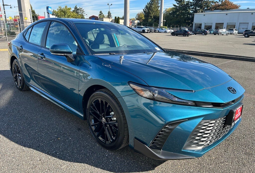 4-Wheel Disc Brakes, 6 Speakers, ABS brakes, Air Conditioning, All Weather Floor Protection (TMS), Alloy wheels, AM/FM radio: SiriusXM, Apple CarPlay/Android Auto, Auto High-beam Headlights, Automatic temperature control, Black Badge Overlays (TMS), Brake assist, Bumpers: body-color, Delay-off headlights, Driver door bin, Driver vanity mirror, Dual front impact airbags, Dual front side impact airbags, Electronic Stability Control, Emergency communication system: Safety Connect (5-year trial), Exterior Parking Camera Rear, Four wheel independent suspension, Front anti-roll bar, Front Bucket Seats, Front Center Armrest, Front dual zone A/C, Front reading lights, Front Seats, Fully automatic headlights, Heated door mirrors, Heated Front Seats, Illuminated entry, Knee airbag, Leather Shift Knob, Leather steering wheel, Low tire pressure warning, Occupant sensing airbag, Outside temperature display, Overhead airbag, Overhead console, Panic alarm, Passenger door bin, Passenger vanity mirror, Power door mirrors, Power driver seat, Power steering, Power windows, Radio data system, Radio: 12.3" Toyota Audio Multimedia, Radio: 8" Toyota Audio Multimedia, Rear anti-roll bar, Rear reading lights, Rear seat center armrest, Rear window defroster, Remote keyless entry, Security system, SofTex & Fabric Seat Trim, Speed control, Speed-sensing steering, Split folding rear seat, Spoiler, Steering wheel mounted audio controls, Telescoping steering wheel, Tilt steering wheel, Traction control, Trip computer, Turn signal indicator mirrors, Variably intermittent wipers, Wheel Locks (TMS), Wheels: 18" Multi-Spoke Black-Finished Alloy.2026 Toyota Camry SE Ocean FWD eCVT 2.5L 4-Cylinder 16V DOHC48/47 City/Highway MPG