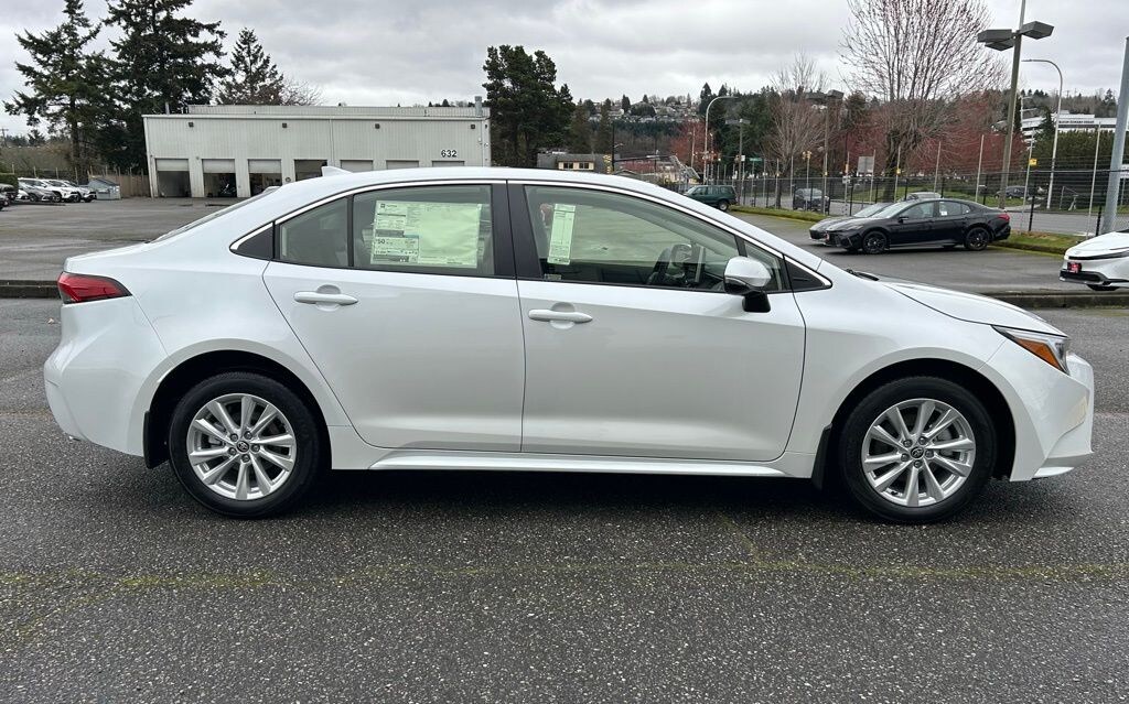 4-Wheel Disc Brakes, 6 Speakers, ABS brakes, Air Conditioning, All Weather Floor Liner Package: Tub Style, Alloy Wheel Locks, Alloy wheels, AM/FM radio: SiriusXM, Apple CarPlay/Android Auto, Auto High-beam Headlights, Automatic temperature control, Brake assist, Bumpers: body-color, Delay-off headlights, Driver door bin, Driver vanity mirror, Dual front impact airbags, Dual front side impact airbags, Electronic Stability Control, Emergency communication system: Safety Connect (up to 10-year trial subscription), Exterior Parking Camera Rear, Four wheel independent suspension, Front anti-roll bar, Front Bucket Seats, Front Center Armrest, Front reading lights, Fully automatic headlights, Heated door mirrors, Heated Front Bucket Seats, Heated front seats, Illuminated entry, Knee airbag, Leather steering wheel, Low tire pressure warning, Mudguards, Navigation system: Drive Connect Cloud Navigation (1-year trial subscription), Occupant sensing airbag, Outside temperature display, Overhead airbag, Panic alarm, Passenger door bin, Passenger vanity mirror, Power door mirrors, Power driver seat, Power moonroof, Power steering, Power windows, Radio data system, Radio: 10.5" Toyota Audio Multimedia, Rear anti-roll bar, Rear Bumper Protector, Rear seat center armrest, Rear side impact airbag, Rear window defroster, Remote keyless entry, SofTex Seat Trim, Speed control, Split folding rear seat, Steering wheel mounted audio controls, Tachometer, Telescoping steering wheel, Tilt steering wheel, Traction control, Trip computer, Trunk LED Light, Turn signal indicator mirrors, Variably intermittent wipers, Wheels: 16" 10 Spoke Alloy.2026 Toyota Corolla Hybrid XLE Wind Chill Prl FWD eCVT 1.8L DOHC 16V VVT50/43 City/Highway MPG