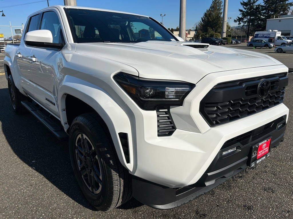 3.583 Axle Ratio, 4-Wheel Disc Brakes, 6 Speakers, ABS brakes, Air Conditioning, Alloy wheels, AM/FM radio: SiriusXM, Anti-whiplash front head restraints, Apple CarPlay/Android Auto, Auto High-beam Headlights, Auto-dimming Rear-View mirror, Automatic temperature control, Black Oval Tube Step, Brake assist, Bumpers: body-color, Driver door bin, Driver vanity mirror, Dual front impact airbags, Dual front side impact airbags, Electronic Stability Control, Emergency communication system: Safety Connect (up to 10-year trial subscription), Exterior Parking Camera Rear, Fabric Seat Trim, Four wheel independent suspension, Front anti-roll bar, Front Bucket Seats, Front Center Armrest, Front fog lights, Front reading lights, Fully automatic headlights, Heated door mirrors, Heated Seats, Illuminated entry, JBL Premium Audio, Knee airbag, Leather Shift Knob, Leather steering wheel, Low tire pressure warning, Occupant sensing airbag, Outside temperature display, Overhead airbag, Overhead console, Panic alarm, Passenger door bin, Passenger vanity mirror, Power door mirrors, Power steering, Power windows, Radio: 8" Toyota Audio Multimedia, Rear step bumper, Rear window defroster, Remote keyless entry, Security system, SofTex Seat Trim, Speed control, Speed-sensing steering, Split folding rear seat, Steering wheel mounted audio controls, Tachometer, Telescoping steering wheel, Tilt steering wheel, Traction control, TRD Sport Package, Trip computer, Turn signal indicator mirrors, Variably intermittent wipers, Wheels: 18" TRD Sport Alloy.2026 Toyota Tacoma TRD Sport Ice 4WD 8-Speed Automatic 2.4L 4-CylinderRecent Arrival!