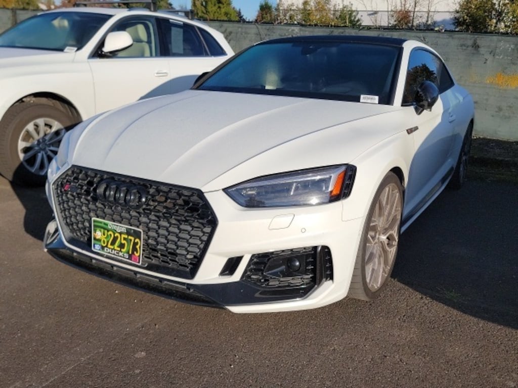 The 2019 Audi RS 5 2.9T Quattro is the pinnacle of performance, technology, and luxury in a high-performance sedan. Powered by a 2.9-liter twin-turbocharged V6 engine, paired with an 8-speed automatic transmission, this car delivers a stunning 444 horsepower and 442 lb-ft of torque to the road through Audi's renowned quattro all-wheel drive. Finished in sleek Glacier White Metallic, the exterior combines aggressive styling with elegance, while the interior is appointed with Black Fine Nappa leather seats accented by Crescendo Red Stitching for a high-performance, luxury feel.