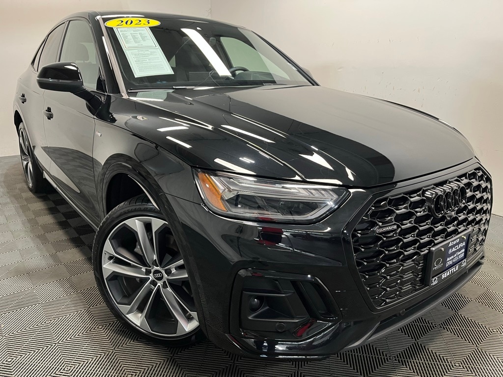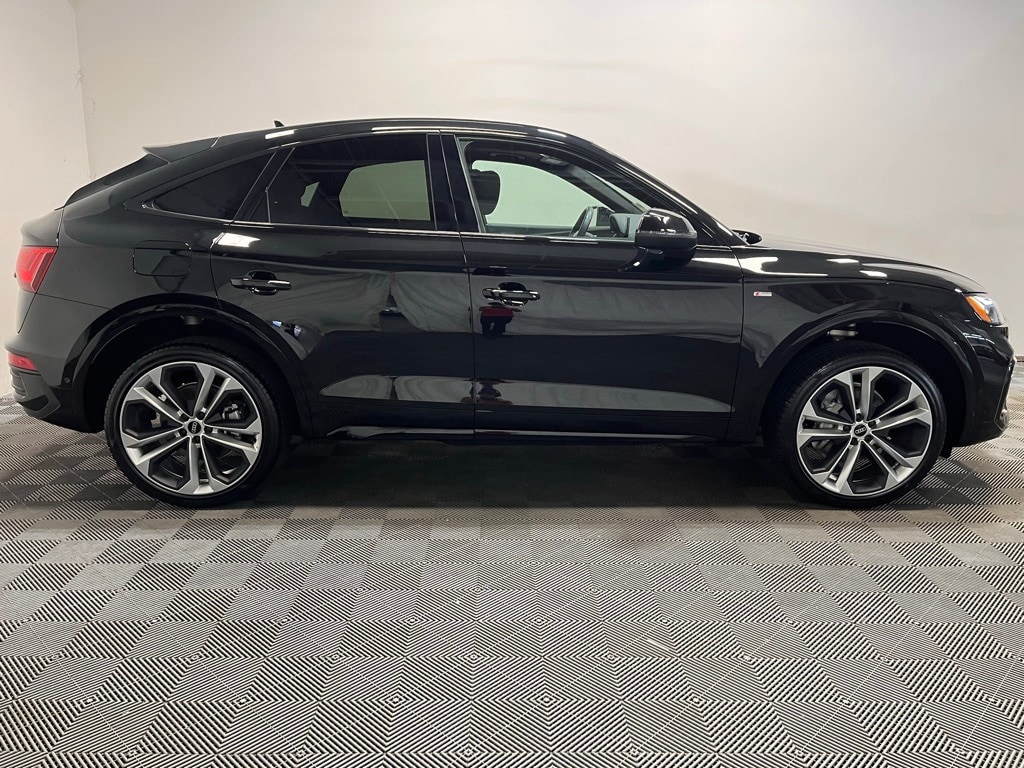 Q5 45 S line Prestige quattro, Audi Active Lane Assist, Audi Advanced Key, Audi Connect PLUS, Audi Phone Box, Audi Virtual Cockpit Plus, Auto-Dimming Power Folding Exterior Mirrors, Bang & Olufsen Sound System w/3D Sound, Black Exterior Trim, Black Optic Sport Package, Convenience Package, Driver Seat Memory, Dual Pane Acoustic Glass for Front Side Windows, Hands-On Detection Steering Wheel, Head-Up Display, Heated & Cooled Front Cup Holder, Heated Rear Seats, Heated Steering Wheel, Leatherette Covered Center Console & Door Armrests, LED Interior Lighting Plus Package, Manual Rear Side Window Sunshades, Matrix-Design LED Headlights w/Headlight Washers, MMI Navigation Plus, Navigation Package, Park Assist, Power Adjustable Steering Column, Prestige Package, SiriusXM w/360L, Sport Suspension, Top View Camera System, Traffic Jam Assist, Traffic Sign Recognition, Ventilated Front Sport Seats, Warm Weather Package, Wheels: 21" 5-Double-Spoke Module Design Bi-Color, 10 Speakers, 4-Wheel Disc Brakes, ABS brakes, Air Conditioning, Alloy wheels, AM/FM radio, Audi Beam-Rings, Audi Guard Protection Kit, Auto High-beam Headlights, Auto-dimming Rear-View mirror, Automatic temperature control, Axle Ratio: TBD, Black Audi Rings & Badges, Brake assist, Bumpers: body-color, Compass, Delay-off headlights, Driver door bin, Driver vanity mirror, Dual front impact airbags, Dual front side impact airbags, Electronic Stability Control, Emergency communication system: Audi connect CARE, Exterior Parking Camera Rear, Four wheel independent suspension, Front anti-roll bar, Front Bucket Seats, Front Center Armrest, Front dual zone A/C, Front fog lights, Front reading lights, Garage door transmitter: HomeLink, Genuine wood console insert, Genuine wood dashboard insert, Genuine wood door panel insert, Heated 8-Way Power Front Bucket Sport Seats, Heated door mirrors, Heated front seats, Illuminated entry, Integrated Toll Module Delete (DISC), Leather Seating Surfaces, Leather Shift Knob, Low tire pressure warning, Occupant sensing airbag, Outside temperature display, Overhead airbag, Overhead console, Panic alarm, Passenger door bin, Passenger vanity mirror, Power door mirrors, Power driver seat, Power Liftgate, Power moonroof: Panoramic, Power passenger seat, Power steering, Power windows, Privacy Trunk Cover, Radio data system, Radio: Audi Sound System, Rain sensing wipers, Rear air conditioning, Rear anti-roll bar, Rear fog lights, Rear reading lights, Rear seat center armrest, Rear window defroster, Rear window wiper, Remote keyless entry, Security system, Speed control, Speed-sensing steering, Speed-Sensitive Wipers, Split folding rear seat, Spoiler, Steering wheel mounted audio controls, Tachometer, Telescoping steering wheel, Tilt steering wheel, Traction control, Trip computer, Turn signal indicator mirrors, Variably intermittent wipers, Wheels: 19" 5-Double-Arm Design Bi-Color Finish, Q5 45 S line Prestige quattro, Audi Active Lane Assist, Audi Advanced Key, Audi Connect PLUS, Audi Phone Box, Audi Virtual Cockpit Plus, Auto-Dimming Power Folding Exterior Mirrors, Bang & Olufsen Sound System w/3D Sound, Black Exterior Trim, Black Optic Sport Package, Convenience Package, Driver Seat Memory, Dual Pane Acoustic Glass for Front Side Windows, Hands-On Detection Steering Wheel, Head-Up Display, Heated & Cooled Front Cup Holder, Heated Rear Seats, Heated Steering Wheel, Leatherette Covered Center Console & Door Armrests, LED Interior Lighting Plus Package, Manual Rear Side Window Sunshades, Matrix-Design LED Headlights w/Headlight Washers, MMI Navigation Plus, Navigation Package, Park Assist, Power Adjustable Steering Column, Prestige Package, SiriusXM w/360L, Sport Suspension, Top View Camera System, Traffic Jam Assist, Traffic Sign Recognition, Ventilated Front Sport Seats, Warm Weather Package, Wheels: 21" 5-Double-Spoke Module Des