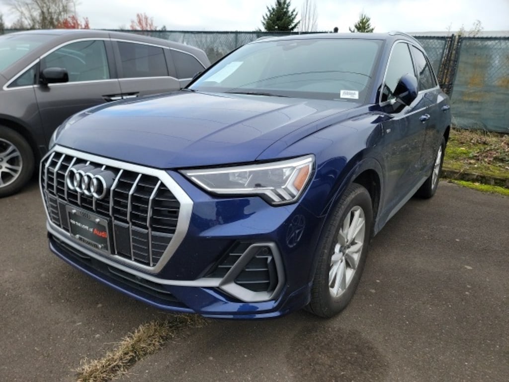 Drive in luxury and style with the 2025 Audi Q3 Quattro S Line Premium Plus 45 TFSI, finished in the stunning Navarra Blue Metallic with a sleek Black Leather interior. Powered by the efficient and powerful 2.0L I4 turbocharged engine and equipped with Audi's renowned quattro AWD system, this Q3 offers a dynamic and smooth driving experience. Offered by Audi Wilsonville, a 2024 CARFAX Top-Rated Dealer, this Q3 provides an excellent balance of sport, comfort, and technology.