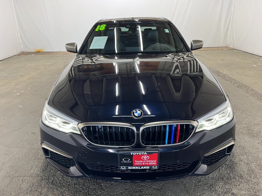 AWD, Black Leather, 16 Speakers, 4-Wheel Disc Brakes, ABS brakes, Active Driving Assistant Plus, Adaptive suspension, Advanced Real Time Traffic Information, Air Conditioning, Alloy wheels, AM/FM radio: SiriusXM, Apple CarPlay Compatibility, Auto High-beam Headlights, Auto tilt-away steering wheel, Auto-dimming door mirrors, Auto-dimming Rear-View mirror, Automatic temperature control, Brake assist, Bumpers: body-color, CD player, Ceramic Controls, Dakota Leather Upholstery, Delay-off headlights, Driver door bin, Driver vanity mirror, Dual front impact airbags, Dual front side impact airbags, Electronic Stability Control, Emergency communication system: BMW Assist eCall, Exterior Parking Camera Rear, Fineline Ridge Wood Trim, Four wheel independent suspension, Front anti-roll bar, Front Bucket Seats, Front Center Armrest, Front dual zone A/C, Front reading lights, Fully automatic headlights, Garage door transmitter, Gesture Control, harman/kardon Surround Sound System, harman/kardon® Speakers, Head-Up Display, Heated door mirrors, Heated Front Seats, Illuminated entry, In-Dash CD Player, Leather Shift Knob, Leather steering wheel, Low tire pressure warning, Lumbar Support, Memory seat, Multi-Contour Seats, Navigation System, Occupant sensing airbag, Outside temperature display, Overhead airbag, Panic alarm, Passenger door bin, Passenger vanity mirror, Power adjustable front head restraints, Power door mirrors, Power driver seat, Power Front Seats, Power moonroof, Power passenger seat, Power Rear Sunshade w/Manual Rr Side Window Shades, Power steering, Power windows, Radio data system, Radio: AM/FM Audio System, Rain sensing wipers, Rear anti-roll bar, Rear reading lights, Rear seat center armrest, Rear window defroster, Remote keyless entry, Security system, SiriusXM Satellite Radio, Soft-Close Automatic Doors, Speed control, Speed-sensing steering, Speed-Sensitive Wipers, Split folding rear seat, Spoiler, Sport steering wheel, Steering wheel memory, Steering wheel mounted audio controls, Tachometer, Telescoping steering wheel, Tilt steering wheel, Traction control, Trip computer, Turn signal indicator mirrors, Variably intermittent wipers, Wheels: 19" x 8" Fr & 19" x 9" Rr M Double-Spoke, Wheels: Fr 20" x 8" & Rr 20" x 9" V-Spoke, WiFi Hotspot, Wireless Charging, AWD, Black Leather. Features: 2018 BMW 5 Series M550i xDrive Carbon Black Metallic AWD 4.4L V8 Turbocharged DOHC 32V LEV3-ULEV125 456hp 8-Speed Automatic