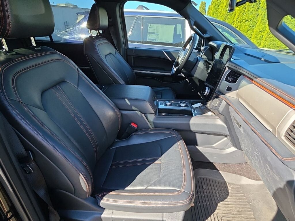 15.5" LCD Capacitive Touchscreen, 2nd Row Leather Trimmed Pwr-Folding Captain's Chairs, 2nd Row Power Windows, 360-Degree Camera w/Split View, 3rd row seats: split-bench, 4-Wheel Disc Brakes, 6 Speakers, ABS brakes, Adjustable pedals, Advanced Cargo Manager, Air Conditioning, Alloy wheels, AM/FM radio: SiriusXM with 360L, Ambient Lighting, Auto High-beam Headlights, Auto Start-Stop Removal (DISC), Auto-dimming door mirrors, Auto-dimming Rear-View mirror, Automatic temperature control, Brake assist, Bumpers: body-color, Compass, Connected Built-In Navigation, ControlTrac w/3.73 Axle Ratio, Delay-off headlights, Driver door bin, Driver vanity mirror, Dual front impact airbags, Dual front side impact airbags, Electronic Stability Control, Emergency communication system: SYNC 4 911 Assist, Equipment Group 501A High Package, Exterior Parking Camera Rear, Four wheel independent suspension, Front & Rear Upgraded Carpet Floor Mats, Front anti-roll bar, Front Bucket Seats, Front Center Armrest, Front dual zone A/C, Front fog lights, Front reading lights, Fully automatic headlights, Garage door transmitter, Hands-Free Foot-Activated Liftgate Removal (DISC), Heated & Vent Cloth/Vinyl Front Captain's Chairs, Heated & Ventilated Leather Front Captain's Chairs, Heated door mirrors, Heated front seats, Heated Steering Wheel, Heated steering wheel, Heavy-Duty Trailer Tow Package, Illuminated entry, Instrument Panel Cluster, Integrated Trailer Brake Controller, Leather steering wheel, Low tire pressure warning, Memory seat, Navigation system: Connected Navigation, Occupant sensing airbag, Outside temperature display, Overhead airbag, Overhead console, Panic alarm, Panoramic Vista Roof, Passenger door bin, Passenger vanity mirror, Pedal memory, Power door mirrors, Power driver seat, Power Liftgate, Power passenger seat, Power steering, Power windows, Power-Folding Sideview Mirrors w/Autofold, Pro Trailer Backup Assist, Radio data system, Radio: AM/FM Stereo w/MP3 Capable, Radio: B&O Sound System by Bang & Olufsen, Rain-Sensing Wipers (Front Only), Rear air conditioning, Rear anti-roll bar, Rear reading lights, Rear window defroster, Rear window wiper, Reclining 3rd row seat, Remote keyless entry, Reverse Brake Assist, Second Row Power Windows Removal, Security system, SiriusXM w/360L, Speed control, Speed-sensing steering, Speed-Sensitive Wipers, Split folding rear seat, Spoiler, Steering wheel memory, Steering wheel mounted audio controls, SYNC 4 w/Enhanced Voice Recognition, Tachometer, Telescoping steering wheel, Tilt steering wheel, Traction control, Trip computer, Turn signal indicator mirrors, Variably intermittent wipers, Ventilated front seats, Vinyl Center Console, Voltmeter, Wheels: 18" Ebony-Painted.