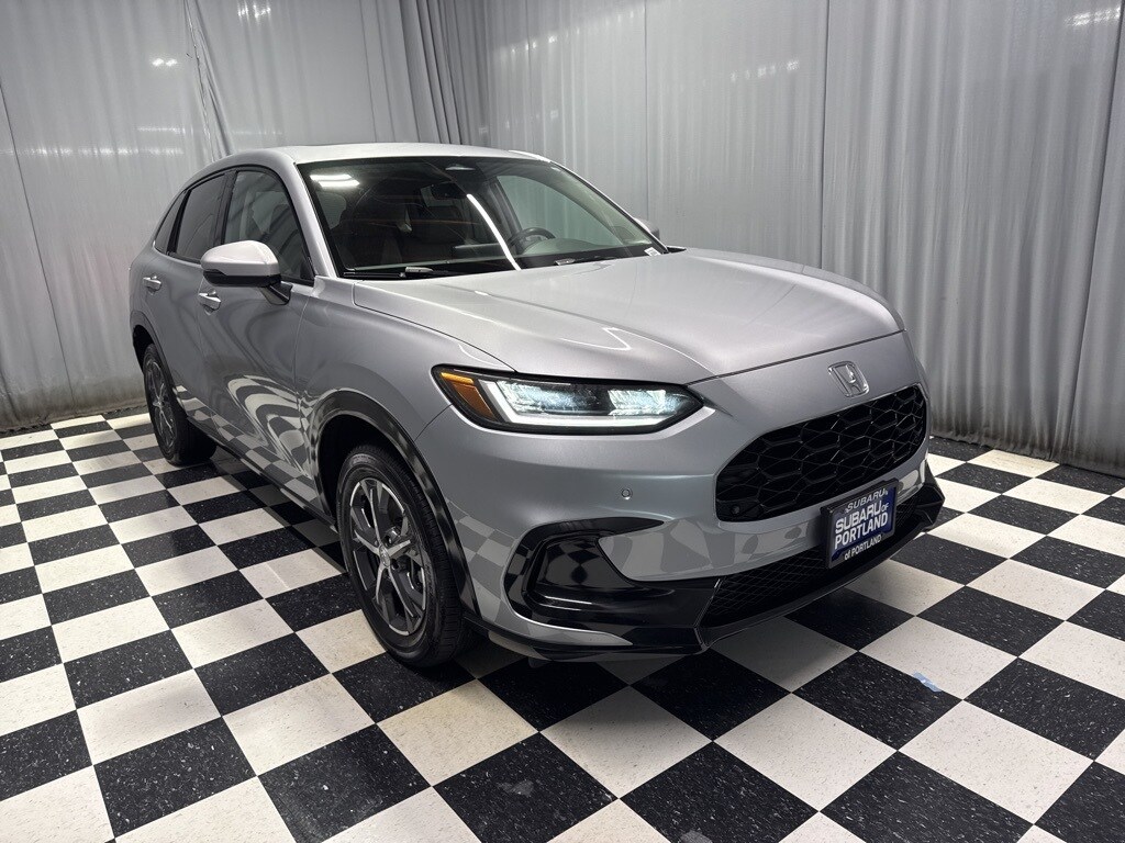 HR-V EX-L, 4D Sport Utility, 2.0L I4 DOHC 16V i-VTEC, CVT, AWD, Silver, Gray w/Leather-Trimmed Seats.