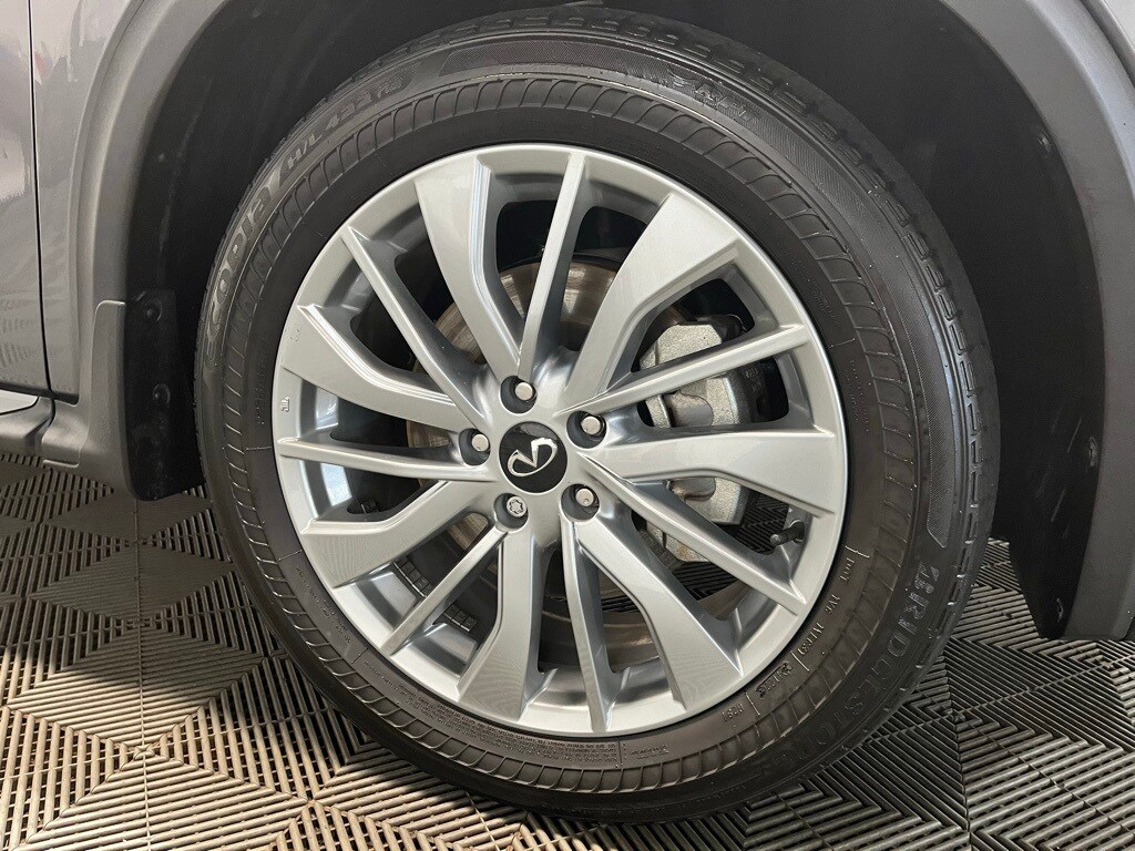 QX50 LUXE, 4-Wheel Disc Brakes, 5.846 Axle Ratio, 6 Speakers, ABS brakes, Air Conditioning, Alloy wheels, AM/FM radio: SiriusXM, Auto High-beam Headlights, Auto-dimming Rear-View mirror, Automatic temperature control, Brake assist, Bumpers: body-color, CD player, Delay-off headlights, Driver door bin, Driver vanity mirror, Dual front impact airbags, Dual front side impact airbags, Electronic Stability Control, Emergency communication system: INFINITI InTouch (1-year complimentary trial), Exterior Parking Camera Rear, Floor Mats, Four wheel independent suspension, Front anti-roll bar, Front Bucket Seats, Front Center Armrest, Front dual zone A/C, Front reading lights, Fully automatic headlights, Garage door transmitter: HomeLink, Heated door mirrors, Heated Front Bucket Seats, Heated front seats, Illuminated entry, Illuminated Kick Plates, Knee airbag, Leather Shift Knob, Leather steering wheel, Leather-Appointed Seat Trim, Literature Kit, Low tire pressure warning, Memory seat, Occupant sensing airbag, Outside temperature display, Overhead airbag, Overhead console, Panic alarm, Passenger door bin, Passenger vanity mirror, Power door mirrors, Power driver seat, Power Liftgate, Power moonroof, Power passenger seat, Power steering, Power windows, Radio data system, Radio: HD Audio System, Rear anti-roll bar, Rear Parking Sensors, Rear reading lights, Rear seat center armrest, Rear side impact airbag, Rear window defroster, Rear window wiper, Remote keyless entry, Security system, Speed control, Speed-sensing steering, Speed-Sensitive Wipers, Splash Guards (Set of 4), Split folding rear seat, Spoiler, Steering wheel mounted audio controls, Tachometer, Telescoping steering wheel, Tilt steering wheel, Traction control, Trip computer, Turn signal indicator mirrors, Variably intermittent wipers, Wheels: 19" Silver Painted Aluminum Alloy, QX50 LUXE.