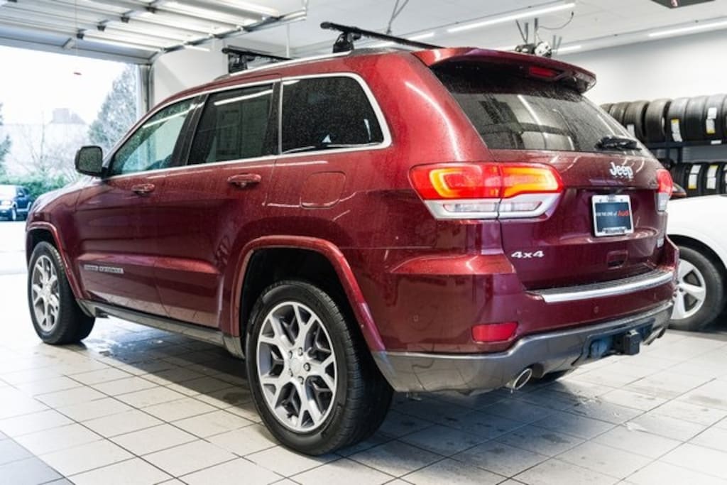 The 2018 Jeep Grand Cherokee Sterling Edition is a well-equipped and versatile SUV powered by a 3.6L V6 engine, paired with an 8-speed automatic transmission and 4WD. It has a reported mileage of 57,989 miles and comes in a stunning Velvet Red Pearlcoat exterior with a black leather interior.