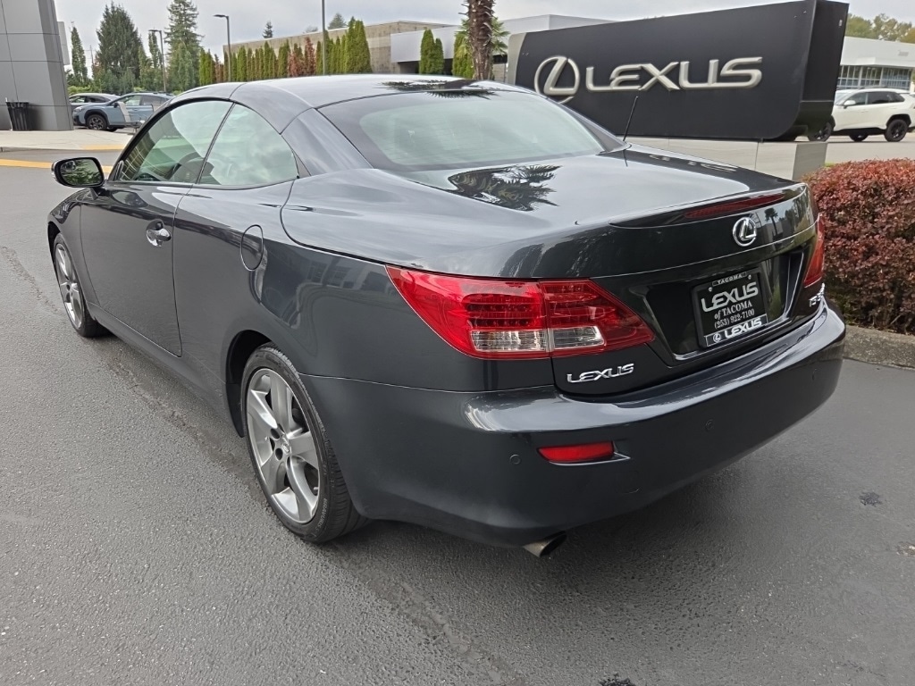 2010 Lexus IS 350 C Smoky Granite Mica RWD 3.5L V6 DOHC VVT-i 24V 6-Speed Automatic Electronic with ECT-iRecent Arrival!Black w/Leather Trimmed Interior, 17 x 8 10-Spoke Aluminum Alloy Wheels, 18 Liquid Graphite Alloy Wheels, 4-Wheel Disc Brakes, 8 Speakers, ABS brakes, Air Conditioning, Alloy wheels, AM/FM radio: XM, Auto tilt-away steering wheel, Auto-dimming Rear-View mirror, Automatic temperature control, Bi-Xenon High-Intensity Headlamps, Brake assist, Bumpers: body-color, Cargo Net, CD player, Compass, Convertible HardTop, Convertible roof lining, Delay-off headlights, Driver & Front Passenger 3-Position Seat Memory, Driver door bin, Driver vanity mirror, Dual front impact airbags, Dual front side impact airbags, Electronic Stability Control, Emergency communication system: Safety Connect, Four wheel independent suspension, Front anti-roll bar, Front Bucket Seats, Front Center Armrest, Front dual zone A/C, Front fog lights, Front reading lights, Fully automatic headlights, Garage door transmitter: HomeLink, Genuine wood console insert, Genuine wood door panel insert, Glass rear window, Heated & Ventilated Front Seats, Heated door mirrors, Illuminated entry, Illuminated Scuff Plates, Integrated roll-over protection, Intuitive Parking Assist, Knee airbag, Leather Seat Trim, Leather steering wheel, Lexus Enform, Lexus Premium Audio System, Low tire pressure warning, Luxury Package, Mark Levinson Premium Audio Package, Navigation System, Navigation System w/Mark Levinson Premium Audio, Occupant sensing airbag, One-Touch Auto Front-Seat Fold & Slide Activation, Outside Rear-View Mirror Functions, Outside temperature display, Overhead console, Panic alarm, Passenger door bin, Passenger vanity mirror, Perforated Semi-Aniline Leather Seat Trim, Power convertible roof, Power door mirrors, Power driver seat, Power passenger seat, Power steering, Power windows, Preferred Accessory Package, Radio data system, Rain-Sensing Wipers, Rear anti-roll bar, Rear Back-Up Camera, Rear window defroster, Remote keyless entry, Security system, Speed control, Speed-sensing steering, Speed-Sensitive Wipers, Spoiler, Steering Column w/Memory, Steering wheel mounted audio controls, Tachometer, Telescoping steering wheel, Tilt steering wheel, Traction control, Trip computer, Trunk Mat, Turn signal indicator mirrors, Variably intermittent wipers, Wheel Locks, Wood Interior Trim, XM NavTraffic/XM NavWeather, Black w/Leather Trimmed Interior.Clean CARFAX.Please contact for availability as vehicles may sell or become unavailable at any time. Vehicle is located at 1708 40th Ave Court East in Fife, WA. All vehicles are one of each. All Pre-Owned or Certified vehicles are Used. A dealer documentary service fee of up to $200 may be added to the sale price or capitalized cost. All offers expire on close of business the day subject content is removed from website, and all financing is subject to credit approval. Prices exclude tax, title and license. All transactions are negotiable including price, trade allowance, interest rate (of which the dealer may retain a portion), term and documentary service fee. Any agreement is subject to execution of contract documents. It is the customer's responsibility to verify the existence and condition of any equipment listed.Awards: * 2010 KBB.com Best Resale Value Awards * 2010 KBB.com Brand Image AwardsReviews: * You might like the 2010 Lexus IS C if youâre in the market for a sporty, luxurious convertible. Along with open-air fun, the IS C provides much of the refinement, security and style of a coupe, thanks to its retractable metal roof. Source: KBB.com