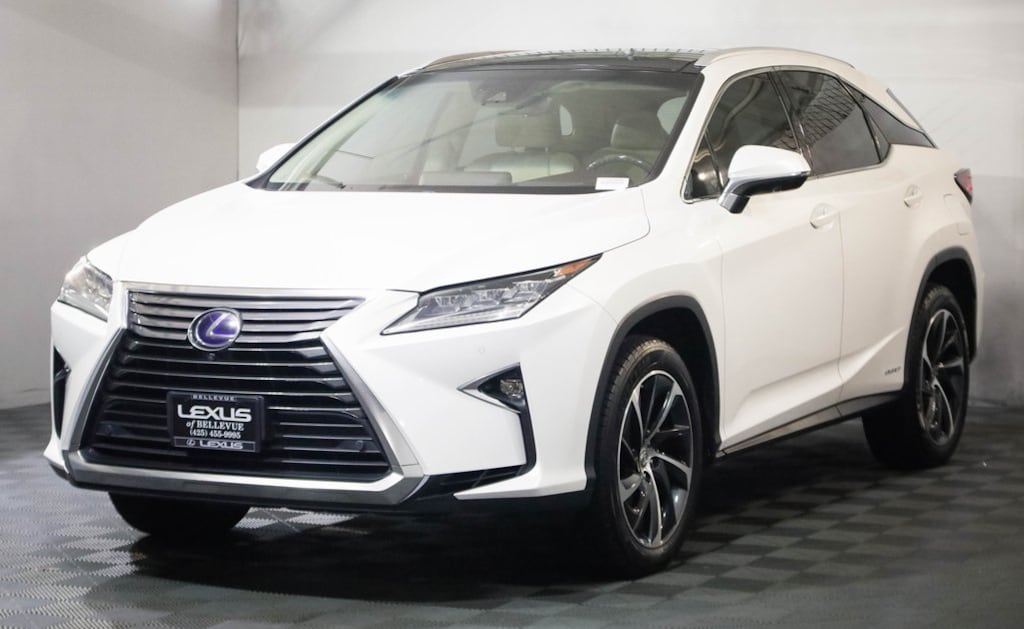 AWD, BACK UP CAMERA, BLUETOOTH, HEADS UP DISPLAY, HEATED AND VENTILATED SEATS, LEATHER, LUXURY PACKAGE, NAVIGATION, PARKING SENSORS, Mark Levinson 15-Speaker Premium Audio Package, Blind Spot Monitor with Rear Cross-Traffic Alert Panoramic View Monitor, 3.5L V6 DOHC VVT-i 24V, AWD, Parchment w/Semi-Aniline Leather Seat Trim, 12.3 Navigation System w/Mark Levinson Audio, 3500 lbs Tow Prep Package, 4-Way Power Lumbar, All-Speed Dynamic Radar Cruise Control (DRCC), Alloy wheels, Black Wheel Caps, Cold Weather Package, Exterior Parking Camera Rear, Front Heated/Ventilated Bucket Seats, Heated and Ventilated Front Seats, Heated Hard Maple Steering Wheel, Heavy Duty Alternator, Heavy-Duty Radiator, Illuminated Aluminum & Wood Door Trim, Lane Departure Alert w/Steering Assist, Lexus Safety System Plus w/Triple-Beam Headlamps, Luxury Package, Navigation System, Panoramic Moonroof, Power Liftgate, Power moonroof, Premium Triple-Beam LED Headlamps w/Auto High Beam, Rain sensing wipers, Rear Door Sunshades, Semi-Aniline Leather Seat Trim, Stainless Steel Rear Bumper Protector, Transmission Cooler, Wheels: 20 x 7.5 Super Chrome Machine Finished.2016 Lexus RX 450h Luxury Eminent White Pearl AWD 3.5L V6 DOHC VVT-i 24V eCVT30/28 City/Highway MPGCome to www.lexusofbellevue.com To See Our Specials!! Call us at 425-455-9995 for Help with any of our departments. Enjoy a seamless, transparent luxury buying experience at Lexus of Bellevue and Lexus Plus. A dealer documentary service fee in an amount up to two hundred dollars may be added to the sale price or capitalized cost.Awards: * 2016 KBB.com Best Resale Value Awards * 2016 KBB.com Brand Image Awards