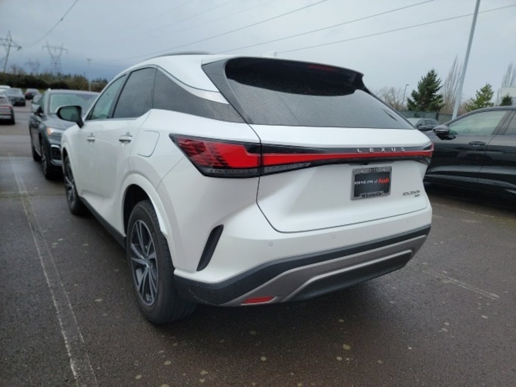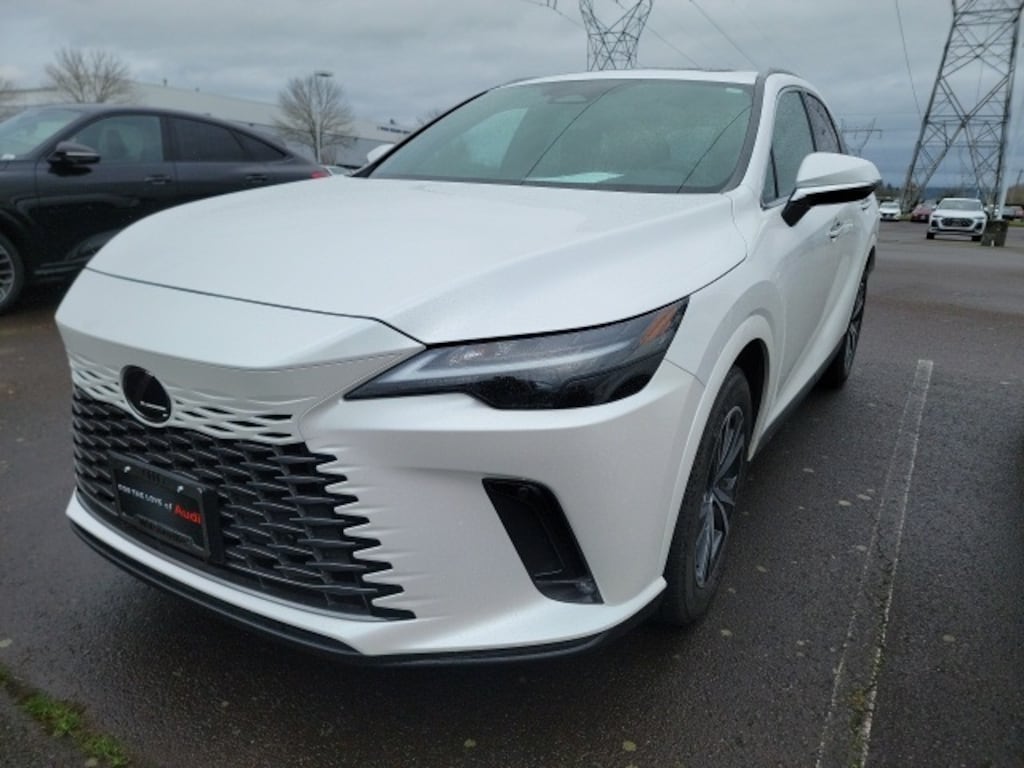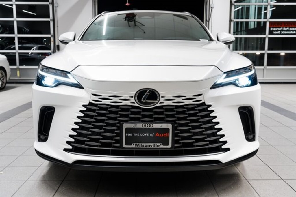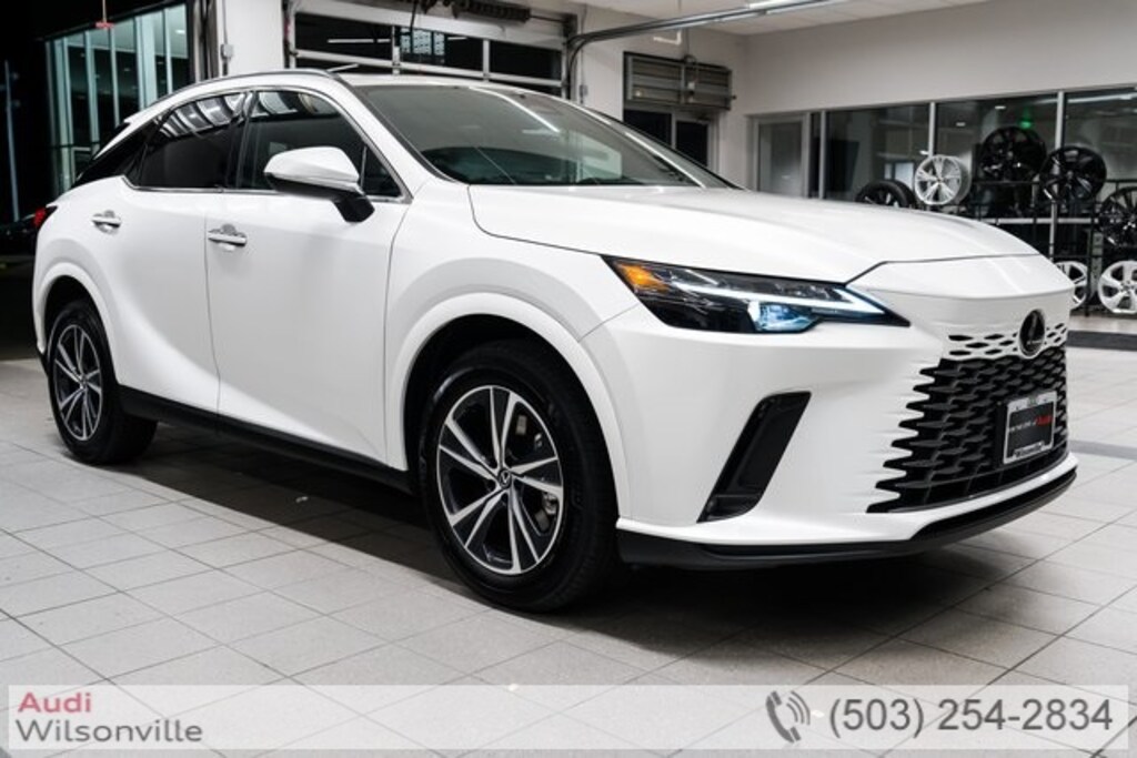 The 2023 Lexus RX 350h Premium is a well-maintained hybrid SUV, finished in a sleek white exterior with a luxurious black leather interior. Powered by a 2.5L I4 hybrid engine paired with a CVT transmission and all-wheel drive, this vehicle offers a smooth and efficient driving experience. The RX 350h comes equipped with a variety of premium features, including a 14" Lexus Interface display, Apple CarPlay, Android Auto, and a high-end 12-speaker sound system for an exceptional audio experience. For added comfort, it includes heated and ventilated front seats, a power-adjustable driver's seat with memory settings, and a panoramic moonroof.