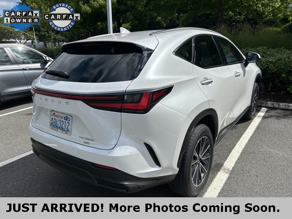 CARFAX One-Owner. Clean CARFAX. 2 YEARS OR 20K MILES MAINTENANCE INCLUDED!, ONE OWNER ON CARFAX!, LOCAL TRADE, BOUGHT HERE SERVICED HERE, LEXUS FACTORY CERTIFIED, BACK UP CAMERA, BLUETOOTH, PARKING SENSORS, HEATED FRONT SEATS, Wireless Apple CarPlay integration, Wireless Android Auto compatibility, Blind Spot Monitor with Rear Cross-Traffic Alert, Lexus Safety System+ 3.0: Pre-Collision System with Pedestrian Detection Lexus Safety System+ 3.0: Lane Departure Alert with Steering Assist Lexus Safety System+ 3.0: Lane Tracing Assist Lexus Safety System+ 3.0: Road Sign Assist, Lexus Safety System+ 3.0: Automatic High Beams Lexus Safety System+ 3.0: Full-Speed Range Dynamic Radar Cruise Control Lexus Safety System+ 3.0: Proactive Driving Assist, 2.5L I4 DOHC 16V, 10 Speakers, Active Cruise Control, Air Conditioning, Alloy wheels, Cold Area Package, Exterior Parking Camera Rear, Heated Front Bucket Seats, Heated Leather Steering Wheel w/Paddle, Leather Shift Knob, Leather steering wheel, NuLuxe Seat Trim, Power driver seat, Power Liftgate, Power Tilt & Slide Moonroof/Sunroof, Radio: 10-Speaker Lexus Premium Sound, Rain sensing wipers, Speed control, Towing Package (2000 lbs), Wheels: 18 Dark Gray Met. & Machined Finish Alloy, Windshield Wiper De-Icer, Wireless Apple CarPlay/Wireless Android Auto, Wireless Phone Charger.2025 Lexus NX 350h Base Eminent White Pearl AWD 2.5L I4 DOHC 16V CVTCertified. L/Certified Details: * Warranty Deductible: $0 * CERTIFIED WARRANTY: Unlimited-mileage warranty up to 6 years. Balance of new car warranty (4 Year/50K Miles) plus 2 Year/Unlimited-mileage L/Certified warranty. SERVICE MAINTENANCE: Complimentary Maintenance Plan covering the first four basic factory-scheduled maintenance services for 2 years or 20,000 miles * 161 Point Inspection * Limited Warranty: 24 Month/Unlimited Mile * Vehicle History * Roadside AssistanceOdometer is 11972 miles below market average! 41/37 City/Highway MPGCome to www.lexusofbellevue.com To See Our Specials!! Call us at 425-455-9995 for Help with any of our departments. Enjoy a seamless, transparent luxury buying experience at Lexus of Bellevue and Lexus Plus. A dealer documentary service fee in an amount up to two hundred dollars may be added to the sale price or capitalized cost.
