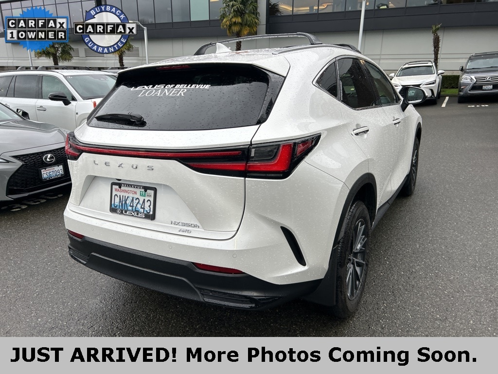 CARFAX One-Owner. Clean CARFAX. 2 YEARS OR 20K MILES MAINTENANCE INCLUDED!, ONE OWNER ON CARFAX!, LOCAL TRADE, AWD, BACK UP CAMERA, BLUETOOTH, PARKING SENSORS, Wireless Apple CarPlay(R) Integration, Wireless Android Auto(TM) Capability, Blind Spot Monitor, Lexus Safety System+ 3.0, 2.5L I4 DOHC 16V, 10 Speakers, Alloy wheels, Cold Area Package, Heated Front Bucket Seats, Heated Leather Steering Wheel w/Paddle, Leather steering wheel, Power Liftgate, Power Tilt & Slide Moonroof/Sunroof, Rain sensing wipers, Towing Package (2000 lbs), Wheels: 18 Dark Gray Met. & Machined Finish Alloy, Windshield Wiper De-Icer.2025 Lexus NX 350h Base Eminent White Pearl AWD 2.5L I4 DOHC 16V CVTCertified. L/Certified Details: * Roadside Assistance * CERTIFIED WARRANTY: Comprehensive Inspection, Unlimited-mileage warranty up to 6 years. Balance of new car warranty (4 Year/50K Miles) plus 2 Year/Unlimited-mileage L/Certified warranty. SERVICE MAINTENANCE: Complimentary Maintenance Plan covering the first four basic factory-scheduled maintenance services for 2 years or 20,000 miles * Vehicle History * Limited Warranty: 24 Month/Unlimited Mile * Warranty Deductible: $041/37 City/Highway MPGCome to www.lexusofbellevue.com To See Our Specials!! Call us at 425-455-9995 for Help with any of our departments. Enjoy a seamless, transparent luxury buying experience at Lexus of Bellevue and Lexus Plus. A dealer documentary service fee in an amount up to two hundred dollars may be added to the sale price or capitalized cost.