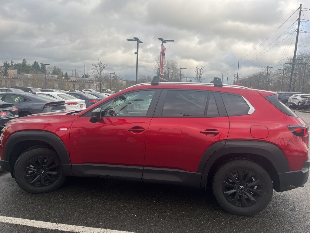 2.5L 4-Cylinder, 4-Wheel Disc Brakes, 8 Speakers, ABS brakes, Air Conditioning, Alloy wheels, AM/FM radio, AppLink/Apple CarPlay and Android Auto, Auto High-beam Headlights, Automatic temperature control, Black Lug Nuts and Black Wheel Locks, Brake assist, Bumpers: body-color, Cargo Package, Delay-off headlights, Driver door bin, Driver vanity mirror, Dual front impact airbags, Dual front side impact airbags, Electronic Stability Control, Emergency communication system: MAZDA CONNECT, Exterior Parking Camera Rear, Front anti-roll bar, Front Bucket Seats, Front Center Armrest, Front dual zone A/C, Front reading lights, Front wheel independent suspension, Fully automatic headlights, Half Leatherette Seat Trim, Heated door mirrors, Heated Front Bucket Seats, Heated front seats, Illuminated entry, Knee airbag, Leather Shift Knob, Leather steering wheel, Low tire pressure warning, Occupant sensing airbag, Outside temperature display, Overhead airbag, Overhead console, Panic alarm, Passenger door bin, Passenger vanity mirror, Power door mirrors, Power driver seat, Power Liftgate, Power steering, Power windows, Radio data system, Radio: AM/FM/HD 8-Speaker Audio Sound System, Rain sensing wipers, Rear seat center armrest, Rear window defroster, Rear window wiper, Remote keyless entry, Silver Cross Bars, Soul Red Crystal Metallic Paint Charge, Speed control, Speed-sensing steering, Split folding rear seat, Spoiler, Steering wheel mounted audio controls, Tachometer, Telescoping steering wheel, Tilt steering wheel, Traction control, Trip computer, Turn signal indicator mirrors, Variably intermittent wipers, Wheels: 17" x 7J Aluminum Alloy Black Metallic Finish, 2.5L 4-Cylinder. Features: 2025 Mazda CX-50 Hybrid Preferred Soul Red Crystal Metallic AWD 2.5L 4-Cylinder eCVT
