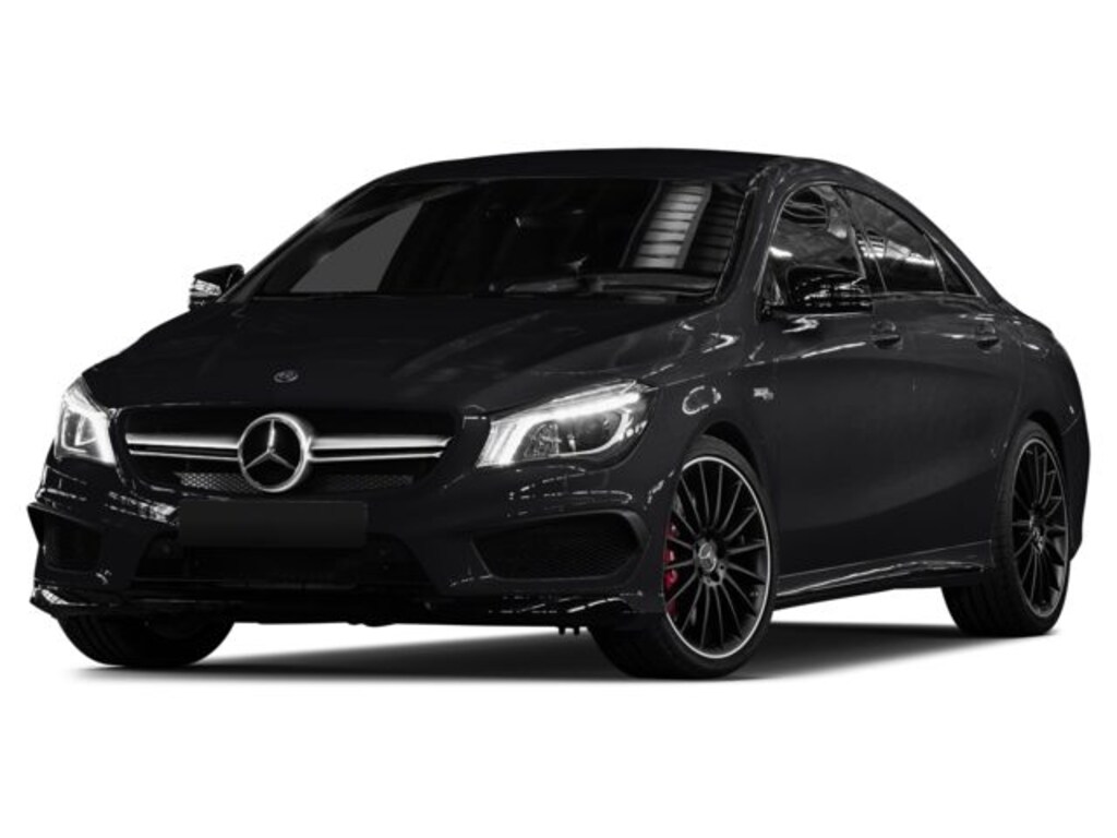 2014 Mercedes-Benz CLA 45 AMG® 4MATIC® Night Black 4MATIC® 2.0L I4 Turbocharged 7-Speed Automatic Showroom Sales Open!!, 18" Twin 5-Spoke Alloy Wheels, 4-Wheel Disc Brakes, 8 Speakers, ABS brakes, Air Conditioning, Alloy wheels, AM/FM radio, AM/FM/CD Player, Brake assist, Bumpers: body-color, CD player, Child-Seat-Sensing Airbag, Delay-off headlights, Driver door bin, Driver vanity mirror, Dual front impact airbags, Dual front side impact airbags, Electronic Stability Control, Emergency communication system, Four wheel independent suspension, Front anti-roll bar, Front Bucket Seats, Front Center Armrest, Front reading lights, Fully automatic headlights, Heated door mirrors, High intensity discharge headlights: Bi-Xenon, Illuminated entry, Knee airbag, Low tire pressure warning, MB-Tex Upholstery, Memory seat, Occupant sensing airbag, Outside temperature display, Overhead airbag, Overhead console, Panic alarm, Passenger door bin, Passenger vanity mirror, Power door mirrors, Power driver seat, Power passenger seat, Power steering, Power windows, Premium audio system: COMAND®, Radio data system, Rain sensing wipers, Rear anti-roll bar, Rear fog lights, Rear reading lights, Rear seat center armrest, Rear window defroster, Remote keyless entry, Security system, Speed control, Speed-sensing steering, Split folding rear seat, Steering wheel mounted audio controls, Tachometer, Telescoping steering wheel, Tilt steering wheel, Traction control, Trip computer, Turn signal indicator mirrors, Variably intermittent wipers, Weather band radio.