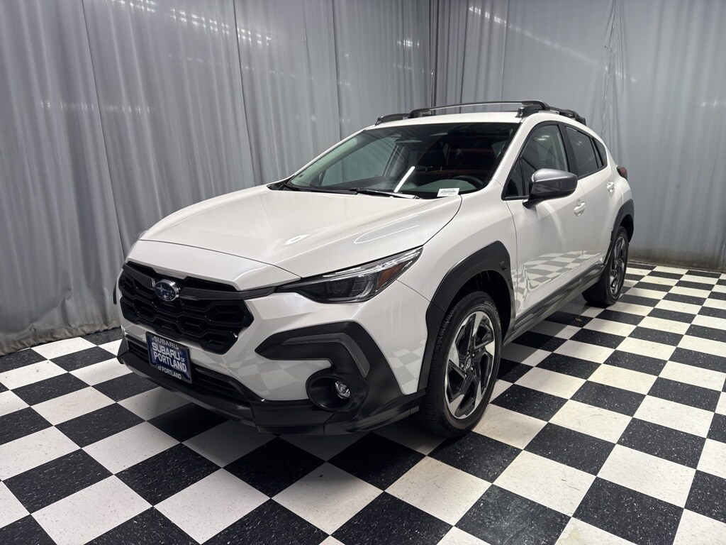 Crosstrek Limited, 4D Sport Utility, 2.5L 4-Cylinder DOHC 16V, Lineartronic CVT, AWD, Crystal White Pearl, Gray W/Orange Stitching Leather.