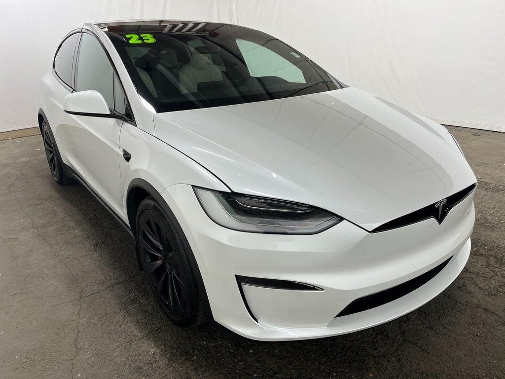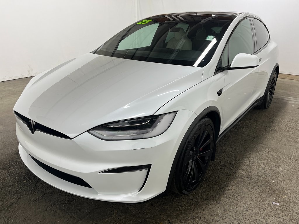 22 Speakers, 3rd row seats: split-bench, 4-Wheel Disc Brakes, 6 Seat Interior, ABS brakes, Adaptive suspension, Air Conditioning, Alloy wheels, Audio memory, Auto High-beam Headlights, Auto tilt-away steering wheel, Auto-dimming door mirrors, Auto-dimming Rear-View mirror, Auto-leveling suspension, Automatic temperature control, Axle Ratio: TBD, Brake assist, Bumpers: body-color, Compass, Delay-off headlights, Driver door bin, Driver vanity mirror, Dual front impact airbags, Dual front side impact airbags, Electronic Stability Control, Emergency communication system, Exterior Parking Camera Rear, Four wheel independent suspension, Front anti-roll bar, Front Bucket Seats, Front Center Armrest, Front dual zone A/C, Front fog lights, Front reading lights, Fully automatic headlights, Garage door transmitter: Homelink, Heated door mirrors, Heated front seats, Heated rear seats, Heated steering wheel, HVAC memory, Illuminated entry, Knee airbag, Lane Departure Warning System, Leather steering wheel, Low tire pressure warning, Memory seat, Navigation System, Occupant sensing airbag, Outside temperature display, Overhead airbag, Passenger door bin, Passenger vanity mirror, Power door mirrors, Power driver seat, Power Liftgate, Power passenger seat, Power steering, Power windows, Premium Audio System, Premium Seat Trim, Radio data system, Rain sensing wipers, Rear air conditioning, Rear anti-roll bar, Rear audio controls, Rear reading lights, Rear side impact airbag, Rear window defroster, Remote keyless entry, Security system, Speed control, Speed-sensing steering, Speed-Sensitive Wipers, Split folding rear seat, Spoiler, Steering wheel memory, Steering wheel mounted A/C controls, Steering wheel mounted audio controls, Telescoping steering wheel, Tilt steering wheel, Traction control, Trip computer, Variably intermittent wipers, Ventilated front seats, Wheels: 20" Cyberstream. Priced below KBB Fair Purchase Price! Features: 2023 Tesla Model X Plaid Ehite AWD Electric Motor 1-Speed Automatic