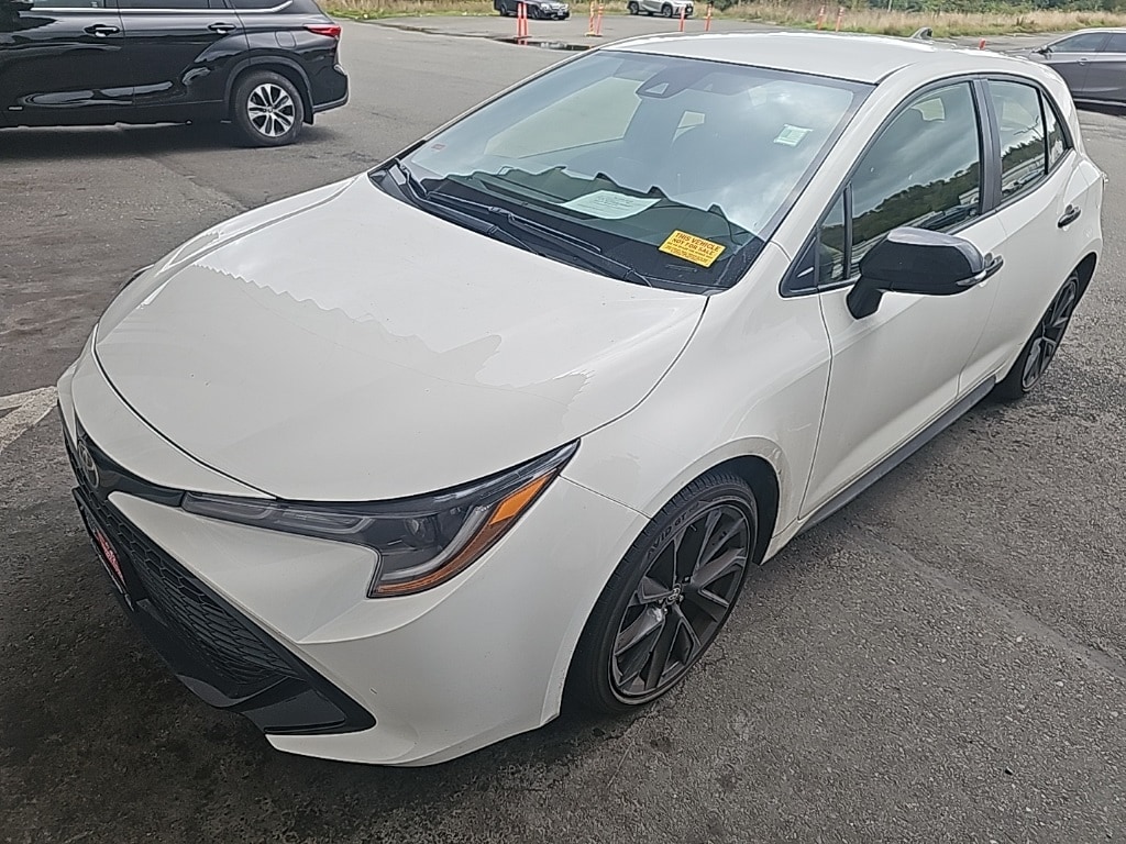 4-Wheel Disc Brakes, 6 Speakers, ABS brakes, Air Conditioning, All-Weather Floor Liner Package (TMS), Alloy wheels, AM/FM radio: SiriusXM, Apple CarPlay/Android Auto, Auto High-beam Headlights, Automatic temperature control, Brake assist, Bumpers: body-color, Compass, Delay-off headlights, Driver door bin, Driver vanity mirror, Dual front impact airbags, Dual front side impact airbags, Electronic Stability Control, Emergency communication system: Safety Connect with 1-year trial, Exterior Parking Camera Rear, Fabric Seat Trim, Four wheel independent suspension, Front anti-roll bar, Front Bucket Seats, Front Center Armrest, Front reading lights, Heated door mirrors, Illuminated entry, Knee airbag, Leather Shift Knob, Low tire pressure warning, Nightshade Package, Occupant sensing airbag, Outside temperature display, Overhead airbag, Overhead console, Owner's Portfolio (TMS), Paint Protection Film (TMS), Panic alarm, Passenger door bin, Passenger vanity mirror, Power door mirrors, Power steering, Power windows, Radio data system, Radio: Audio, Rear anti-roll bar, Rear Bumper Protector (TMS), Rear seat center armrest, Rear side impact airbag, Rear window defroster, Rear window wiper, Remote keyless entry, Security system, Speed control, Speed-sensing steering, Split folding rear seat, Spoiler, Sport Front Seats, Steering wheel mounted audio controls, Tachometer, Telescoping steering wheel, Tilt steering wheel, Traction control, TRD Air Filter (TMS), Trip computer, Turn signal indicator mirrors, Variably intermittent wipers, Wheels: 18" Black Metallic Painted Aluminum. Features: 2022 Toyota Corolla Hatchback SE Nightshade Edition White FWD 2.0L I4 CVT