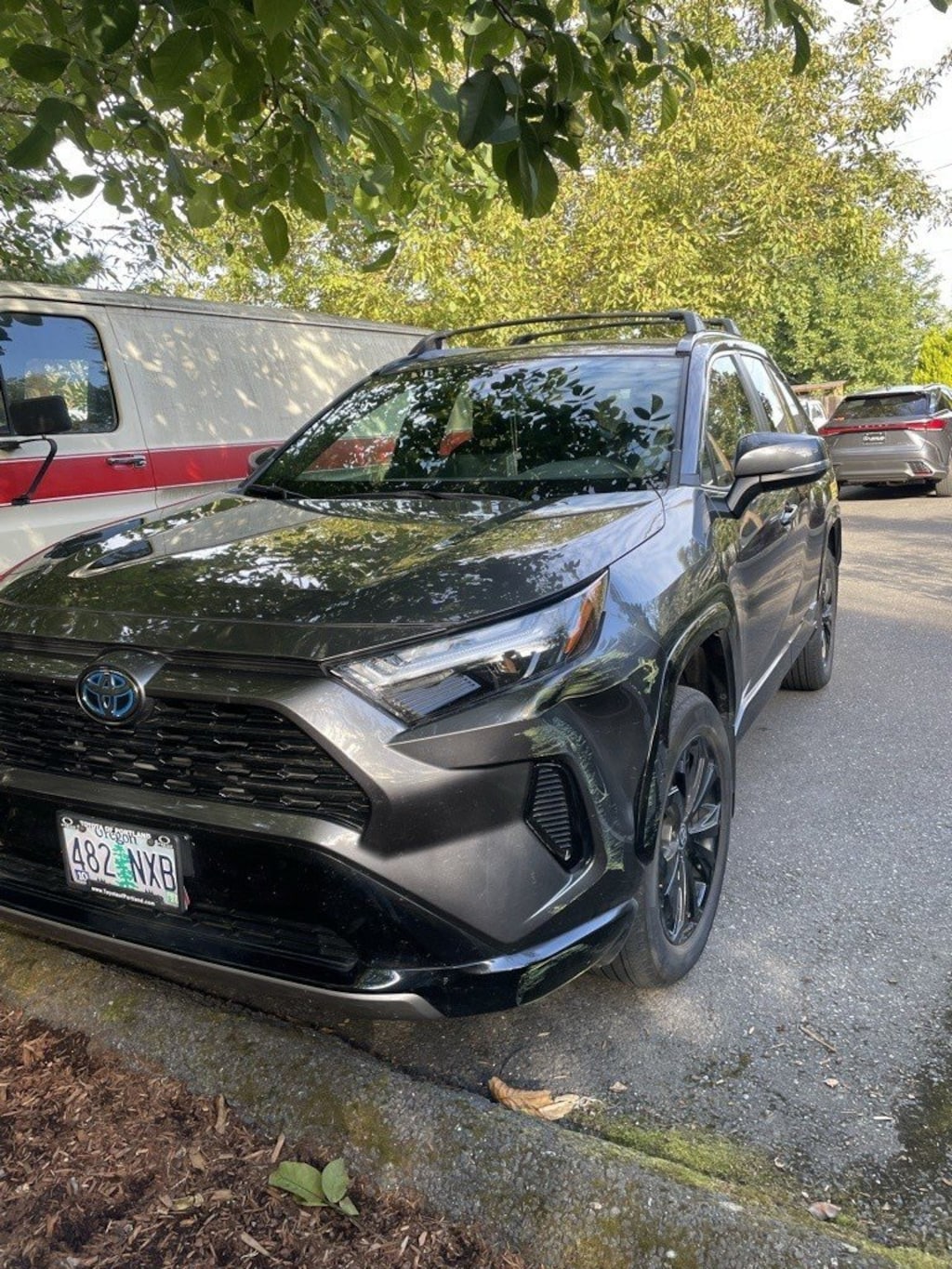BACKUP CAMERA, COMPLIMENTARY CARFAX, HEATED SEATS, HEATED STEERING WHEEL, LOCAL TRADE, NON-SMOKER, POWER MOONROOF, RAV4 Hybrid SE, 4D Sport Utility, 2.5L 4-Cylinder, AWD, Alloy wheels, Apple CarPlay/Android Auto, Auto High-beam Headlights, Automatic temperature control, Brake assist, Convenience Package, Delay-off headlights, Electronic Stability Control, Exterior Parking Camera Rear, Front Bucket Seats, Front Door Smart Key System w/Push Button Start, Front dual zone A/C, Front Seat Heating, Fully automatic headlights, Heated 3-Spoke Leather Steering Wheel, Lane Departure Warning System, Outside temperature display, Power driver seat, Power Liftgate, Rain Sensing Front Wipers, Roof Rack Cross Bars (TMS), SE Grade Weather Package, Split folding rear seat, Telescoping steering wheel, Tilt & Slide Moon Roof, Tilt steering wheel, Turn signal indicator mirrors, Wiper Deicer.
