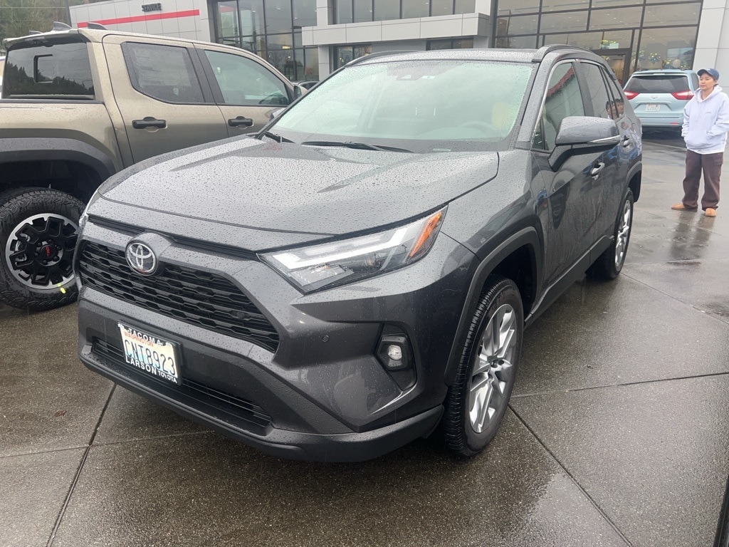 AWD, Black Artificial Leather, 3 Spoke Leather Heated Steering Wheel, 3 Spoke Leather Steering Wheel, 4-Wheel Disc Brakes, 6 Speakers, ABS brakes, Advanced Technology Package, Air Conditioning, All Weather Floor Liners & Cargo Liner (TMS), Alloy wheels, AM/FM radio: SiriusXM, Anti-Theft System, Auto High-beam Headlights, Automatic temperature control, Axle Ratio: 3.177, Blind Spot Monitor, Brake assist, Bumpers: body-color, Delay-off headlights, Driver door bin, Driver Seat w/2-Position Memory Function, Driver vanity mirror, Dual front impact airbags, Dual front side impact airbags, Electronic Stability Control, Emergency communication system: Safety Connect (10-year trial), Exterior Parking Camera Rear, Four wheel independent suspension, Front & Rear Parking Assist w/Automated Braking, Front anti-roll bar, Front Bucket Seats, Front Center Armrest, Front dual zone A/C, Front reading lights, Front Seat Heating, Fully automatic headlights, Heated door mirrors, Illuminated entry, Intelligence Clearance & Back Sonar, Knee airbag, Leather Shift Knob, Leather steering wheel, Low tire pressure warning, Occupant sensing airbag, Outside temperature display, Overhead airbag, Overhead console, Panic alarm, Passenger door bin, Passenger vanity mirror, Power door mirrors, Power driver seat, Power Liftgate, Power moonroof, Power steering, Power windows, Radio data system, Radio: AM/FM/XM Audio System, Rear anti-roll bar, Rear seat center armrest, Rear window defroster, Rear window wiper, Remote keyless entry, SofTex Seat Trim, Speed control, Speed-sensing steering, Split folding rear seat, Spoiler, Steering wheel mounted audio controls, Tachometer, Telescoping steering wheel, Tilt steering wheel, Traction control, Trip computer, Turn signal indicator mirrors, Variably intermittent wipers, Weather Package, Wheel Lock (TMS), Wheels: 19" 5-Spoke Silver Alloy, Wireless Phone Charger, XLE Premium Package, AWD, Black Artificial Leather. Features: 2024 Toyota RAV4 XLE Premium Magnetic Gray AWD 2.5L 4-Cylinder DOHC Dual VVT-i 8-Speed Automatic
