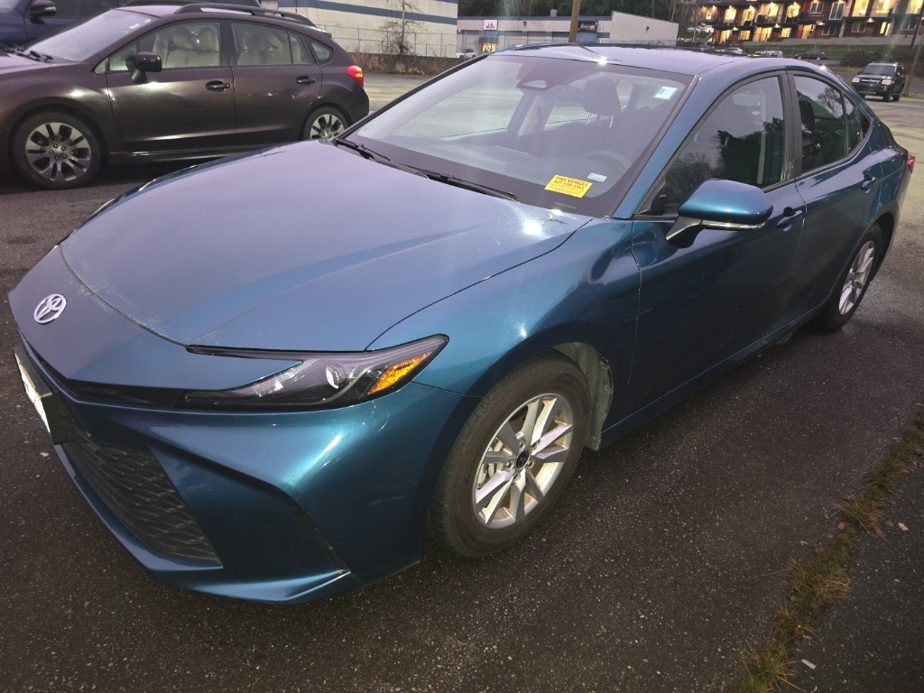 2.5L 4-Cylinder 16V DOHC, Black Cloth, 4-Wheel Disc Brakes, 6 Speakers, ABS brakes, Air Conditioning, Alloy wheels, AM/FM radio: SiriusXM, Apple CarPlay/Android Auto, Auto High-beam Headlights, Automatic temperature control, Brake assist, Bumpers: body-color, Delay-off headlights, Driver door bin, Driver vanity mirror, Dual front impact airbags, Dual front side impact airbags, Electronic Stability Control, Emergency communication system: Safety Connect (up to 10-year trial subscription), Exterior Parking Camera Rear, Fabric Seat Trim, Four wheel independent suspension, Front anti-roll bar, Front Bucket Seats, Front Center Armrest, Front dual zone A/C, Front reading lights, Fully automatic headlights, Heated door mirrors, Illuminated entry, Knee airbag, Low tire pressure warning, Occupant sensing airbag, Outside temperature display, Overhead airbag, Overhead console, Panic alarm, Passenger door bin, Passenger vanity mirror, Power door mirrors, Power steering, Power windows, Radio data system, Radio: Toyota Audio Multimedia w/8" Touchscreen, Rear anti-roll bar, Rear seat center armrest, Rear side impact airbag, Rear window defroster, Remote keyless entry, Security system, Speed control, Speed-sensing steering, Split folding rear seat, Steering wheel mounted audio controls, Telescoping steering wheel, Tilt steering wheel, Traction control, Trip computer, Turn signal indicator mirrors, Variably intermittent wipers, Wheels: 16" Silver-Finished Alloy, 2.5L 4-Cylinder 16V DOHC, Black Cloth. Features: 2025 Toyota Camry LE Ocean FWD 2.5L 4-Cylinder 16V DOHC eCVT