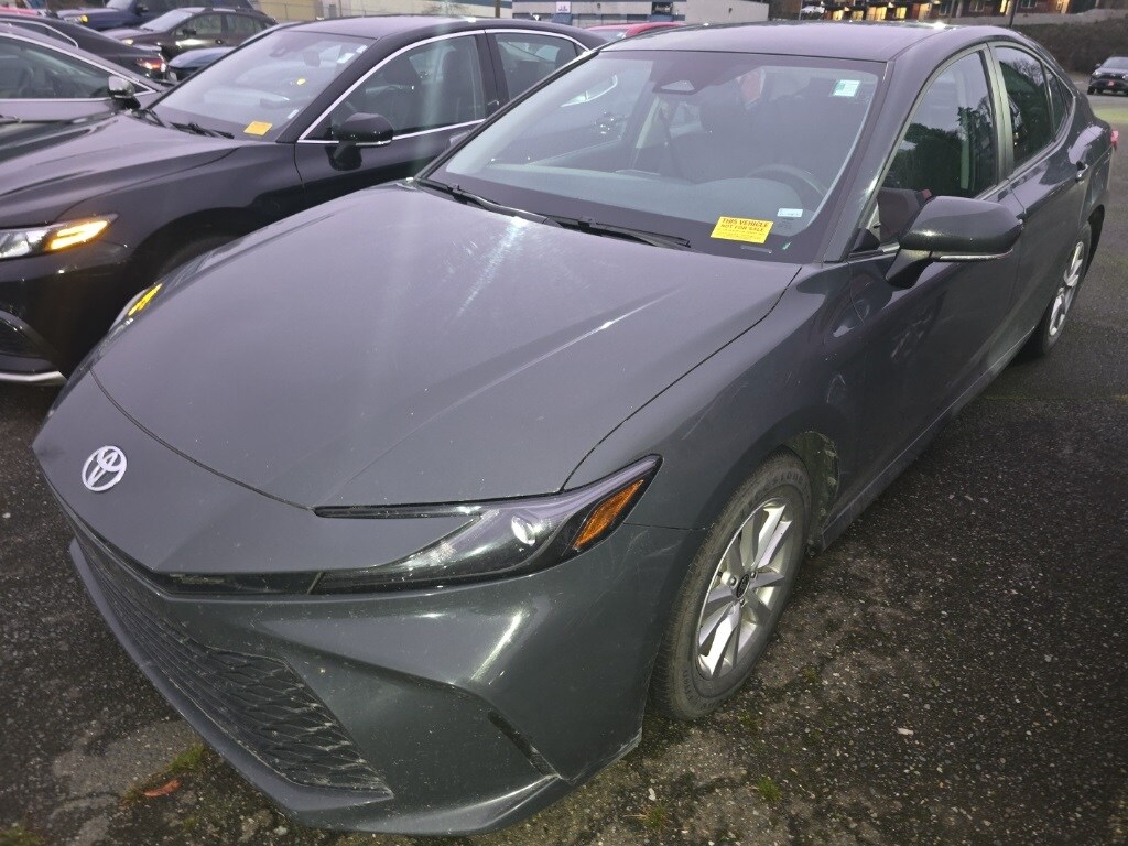 2.5L 4-Cylinder 16V DOHC, Black Cloth, 4-Wheel Disc Brakes, 6 Speakers, ABS brakes, Air Conditioning, Alloy wheels, AM/FM radio: SiriusXM, Apple CarPlay/Android Auto, Auto High-beam Headlights, Automatic temperature control, Brake assist, Bumpers: body-color, Delay-off headlights, Driver door bin, Driver vanity mirror, Dual front impact airbags, Dual front side impact airbags, Electronic Stability Control, Emergency communication system: Safety Connect (up to 10-year trial subscription), Exterior Parking Camera Rear, Fabric Seat Trim, Four wheel independent suspension, Front anti-roll bar, Front Bucket Seats, Front Center Armrest, Front dual zone A/C, Front reading lights, Fully automatic headlights, Heated door mirrors, Illuminated entry, Knee airbag, Low tire pressure warning, Occupant sensing airbag, Outside temperature display, Overhead airbag, Overhead console, Panic alarm, Passenger door bin, Passenger vanity mirror, Power door mirrors, Power steering, Power windows, Radio data system, Radio: Toyota Audio Multimedia w/8" Touchscreen, Rear anti-roll bar, Rear seat center armrest, Rear side impact airbag, Rear window defroster, Remote keyless entry, Security system, Speed control, Speed-sensing steering, Split folding rear seat, Steering wheel mounted audio controls, Telescoping steering wheel, Tilt steering wheel, Traction control, Trip computer, Turn signal indicator mirrors, Variably intermittent wipers, Wheels: 16" Silver-Finished Alloy, 2.5L 4-Cylinder 16V DOHC, Black Cloth. Features: 2025 Toyota Camry LE Underground FWD 2.5L 4-Cylinder 16V DOHC eCVT