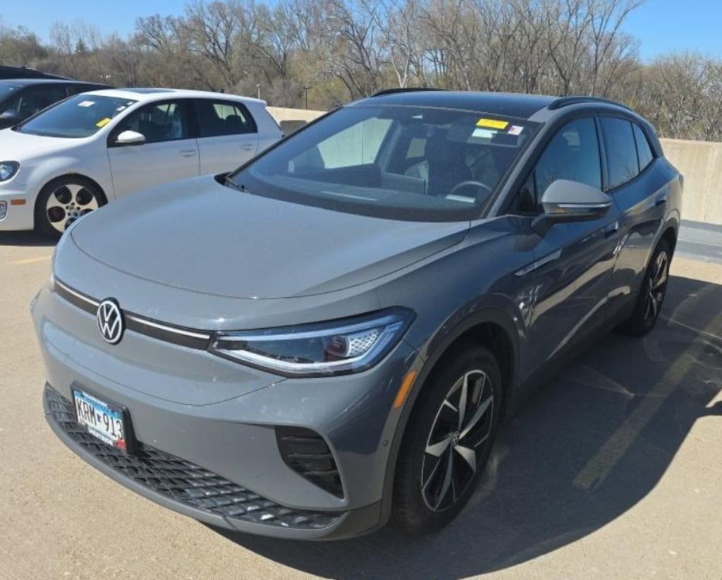 2023 Volkswagen ID.4 Pro S Pure Gray AWD Electric Motor Single-Speed Automatic Showroom Sales Open!!, 3.90 Axle Ratio, 4 Wheel Independent Suspension, 7 Speakers, ABS brakes, Air Conditioning, Alloy wheels, Auto High-beam Headlights, Auto-dimming Rear-View mirror, Auto-Dimming Rearview Mirror w/HomeLink Connect, Automatic temperature control, Brake assist, Bumpers: body-color, Delay-off headlights, Driver door bin, Driver vanity mirror, Driver's Seat Mounted Armrest, Dual front impact airbags, Dual front side impact airbags, Electronic Stability Control, Emergency communication system: VW Car-Net Safe & Secure 5-year, EV Roadside Assistance Kit, Exterior Parking Camera Rear, First Aid Kit, Four wheel independent suspension, Front anti-roll bar, Front Bucket Seats, Front dual zone A/C, Front fog lights, Front reading lights, Fully automatic headlights, Heated door mirrors, Heated Front Seats, Heated front seats, Heated steering wheel, Heavy Duty Trunk Liner w/VW CarGo Blocks, ID.4 Protection & Convenience Package (DISC), Illuminated entry, Low tire pressure warning, Luggage Net, Memory seat, Navigation System, Occupant sensing airbag, Outside temperature display, Overhead airbag, Overhead console, Panic alarm, Passenger door bin, Passenger seat mounted armrest, Passenger vanity mirror, Perforated V-Tex Leatherette Seating Surfaces, Power door mirrors, Power driver seat, Power Liftgate, Power passenger seat, Power steering, Power windows, Radio data system, Radio: Discover Pro Max w/12" Touchscreen Nav, Rain sensing wipers, Rear anti-roll bar, Rear reading lights, Rear seat center armrest, Rear window defroster, Rear window wiper, Remote keyless entry, Rubber Mats Kit (Set of 4) (DISC), Speed control, Speed-sensing steering, Split folding rear seat, Spoiler, Steering wheel mounted audio controls, Telescoping steering wheel, Tilt steering wheel, Traction control, Trip computer, Turn signal indicator mirrors, Variably intermittent wipers, Wheels: 20" 5-Spoke 2-Tone Machined Alloy.
